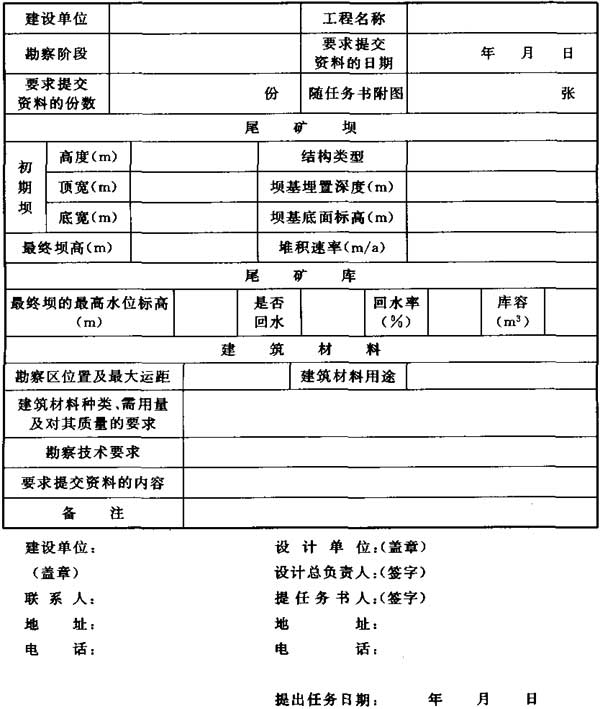 表B 尾礦及其他工業(yè)廢渣堆場巖土工程勘察任務(wù)書