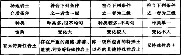 注:場地巖土介質(zhì)復(fù)雜程度等級(jí)根據(jù)條件自一級(jí)向三級(jí)推定,以最先滿足為準(zhǔn)。