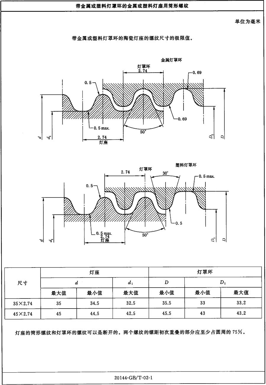 本標(biāo)準(zhǔn)也包含燈罩環(huán)用筒形螺紋。