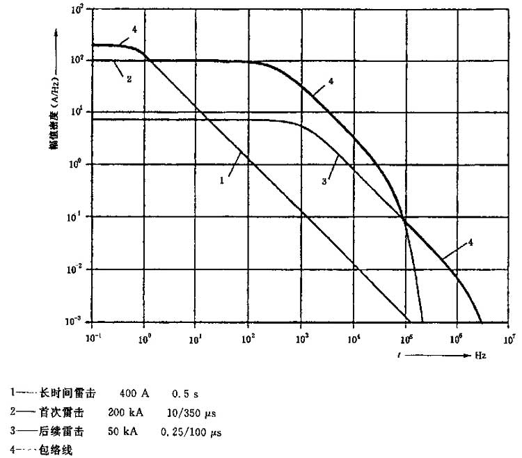 應采用雷電流幅值密度(圖B.5給出)及相應的磁場幅值密度來評估屏蔽效能。