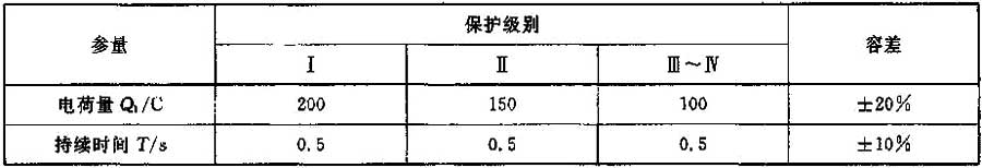 長時間雷擊的測試參數(shù)(包括持續(xù)時間為T的能量Q1)由表C.2給出。
