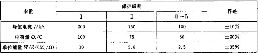 對各種保護級別,雷擊點的雷電流參數(shù)見下列各表: