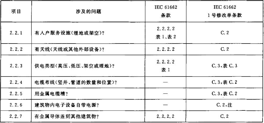 與IEC 61662無直接關(guān)系,但確定防雷設(shè)計(jì)原則時(shí)需考慮的其他問題在表4中列出。