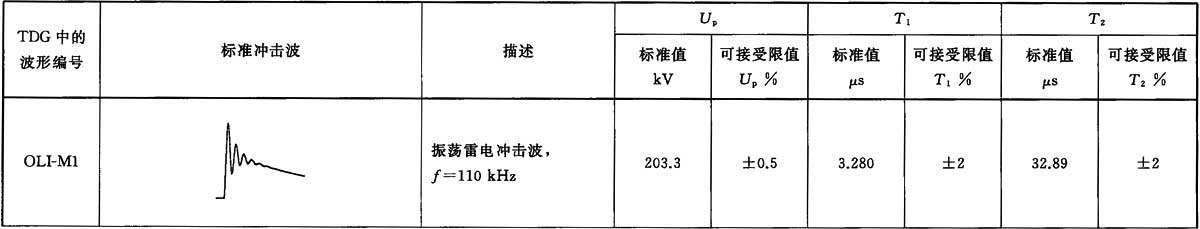 表A.5 振蕩雷電沖擊波(OLI)參數(shù)的標(biāo)準(zhǔn)值及其可接受的限值