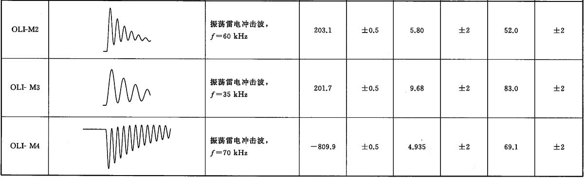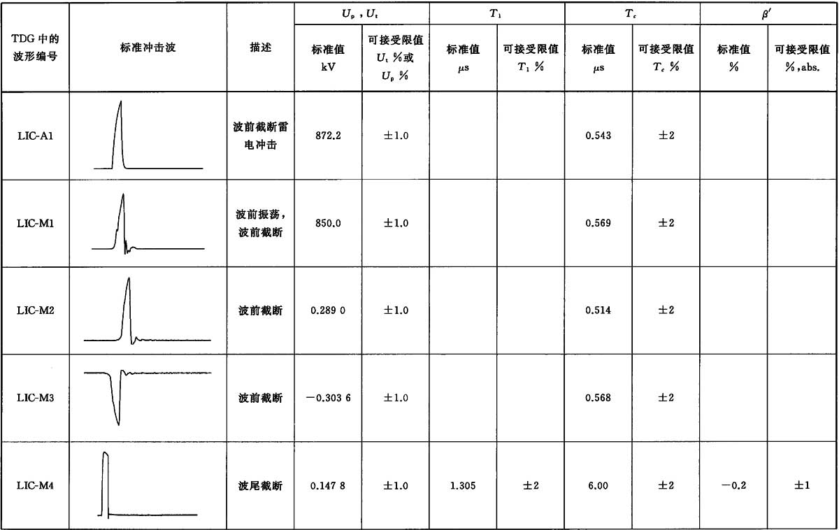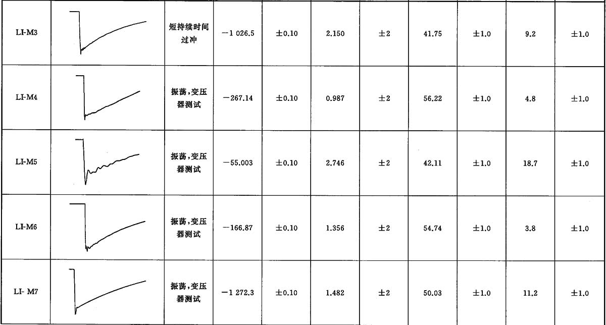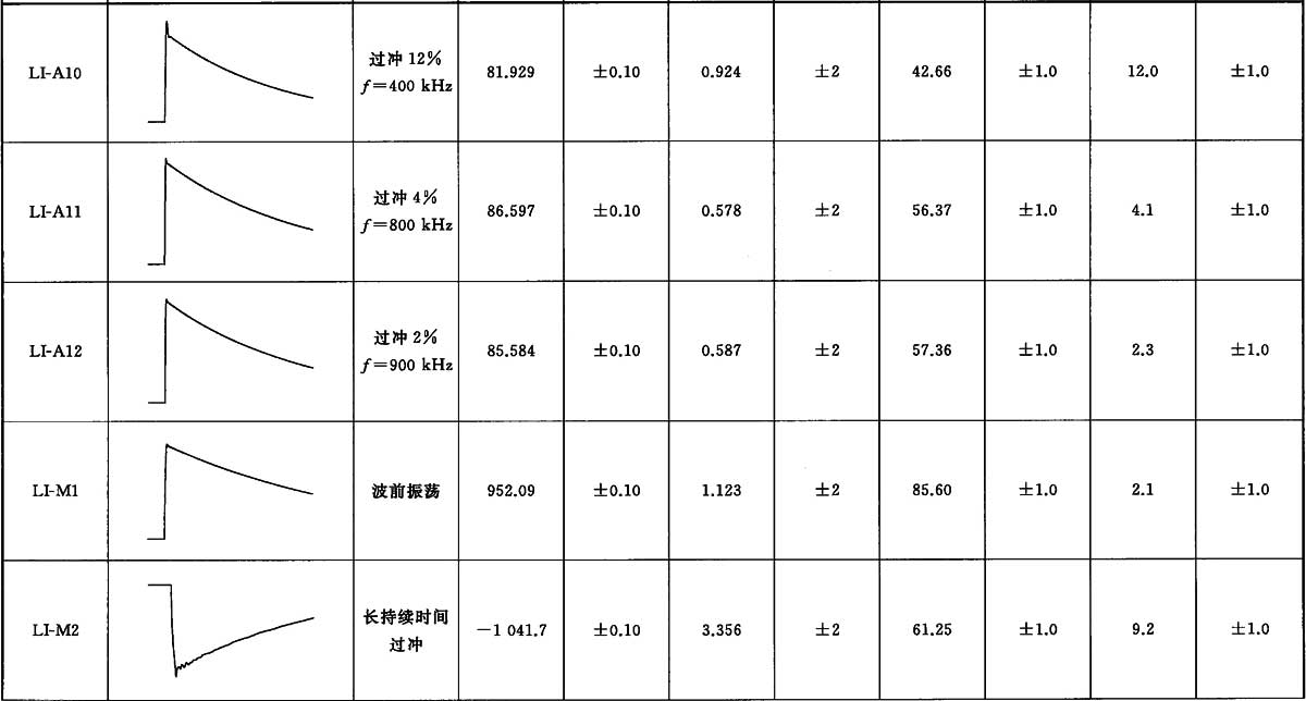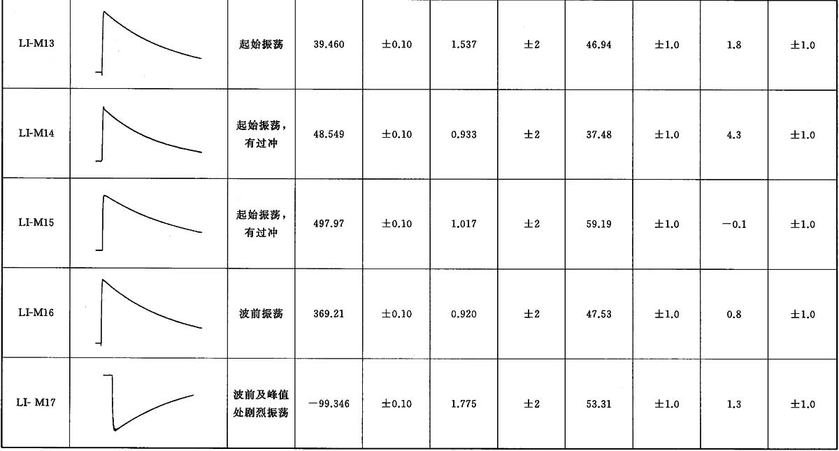 標(biāo)準(zhǔn)沖擊波形的參數(shù)值見表A.1~表A.6。