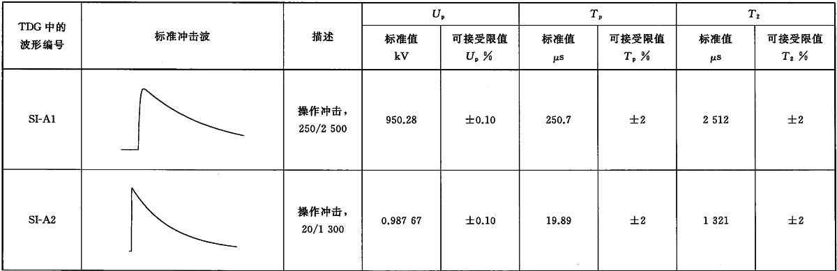 附錄A TDG沖擊波形參數(shù)的標(biāo)準(zhǔn)值及其可接受的限值