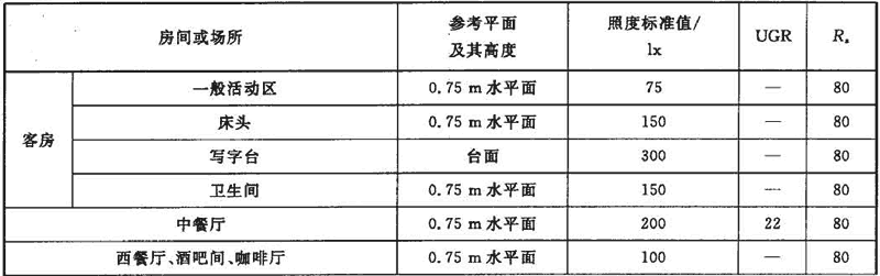 6.2 賓館、飯店建筑實(shí)際運(yùn)行照度標(biāo)準(zhǔn)值應(yīng)達(dá)到表3的規(guī)定。