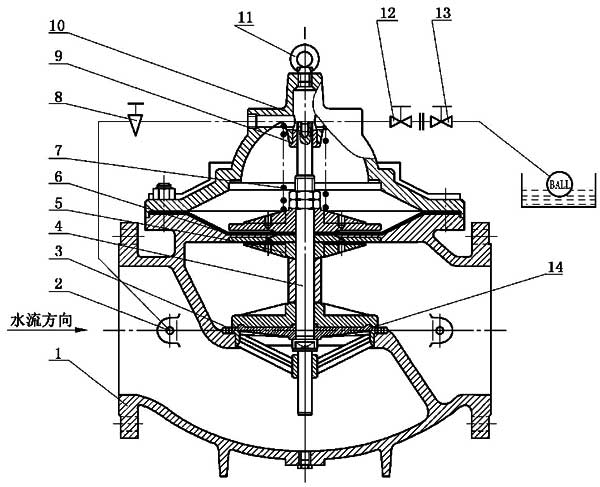 利用水位控制浮球升降來(lái)控制主閥的開(kāi)啟和關(guān)閉,達(dá)到自動(dòng)控制設(shè)定液位的閥門。