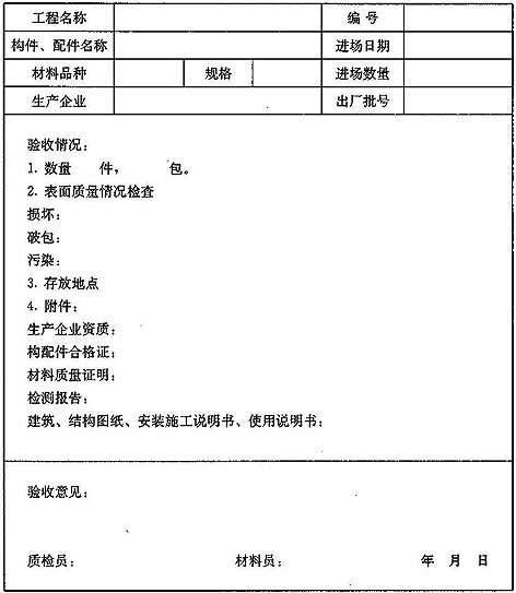 A.0.1 活動房構(gòu)配件進(jìn)場驗(yàn)收記錄應(yīng)符合表A.0.1規(guī)定的格式。