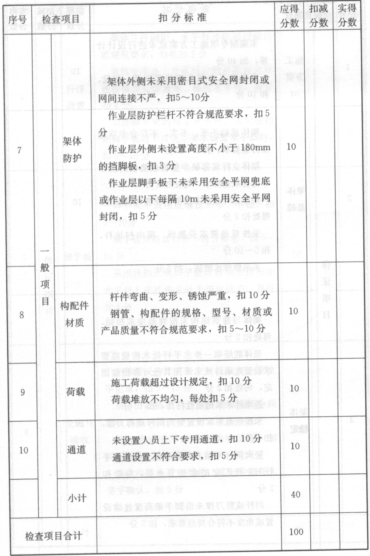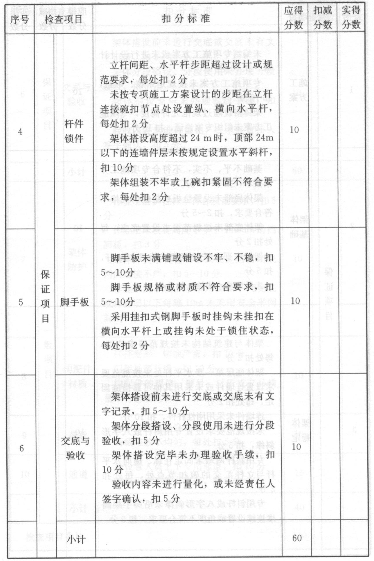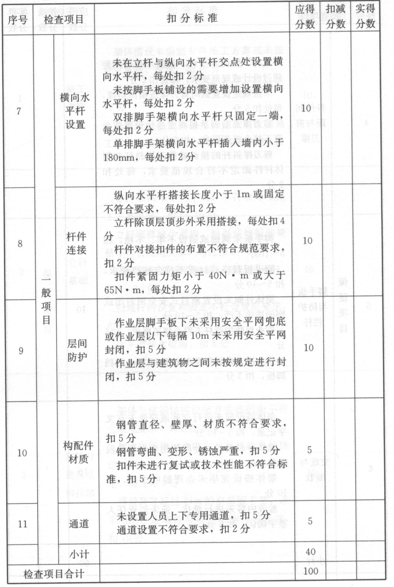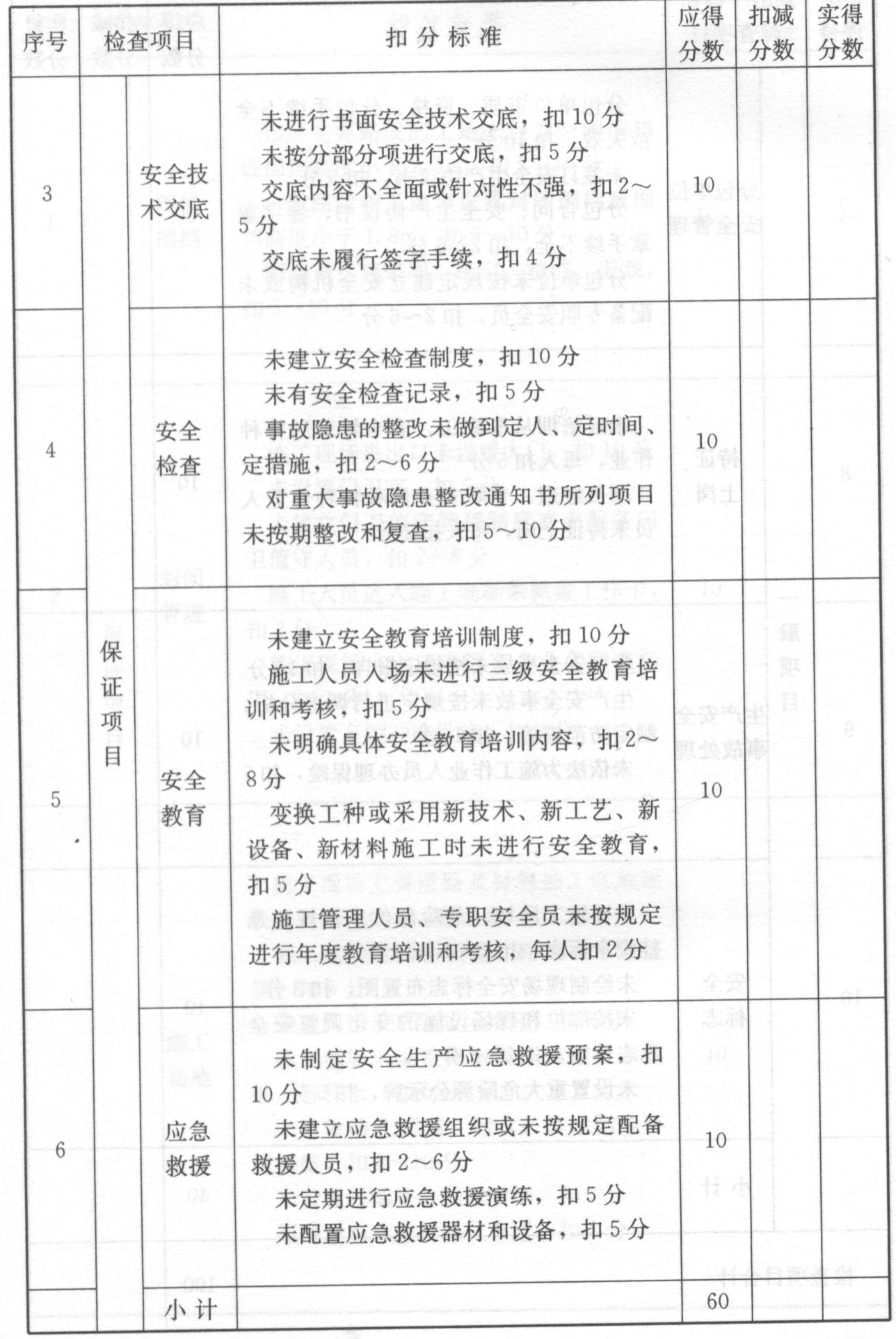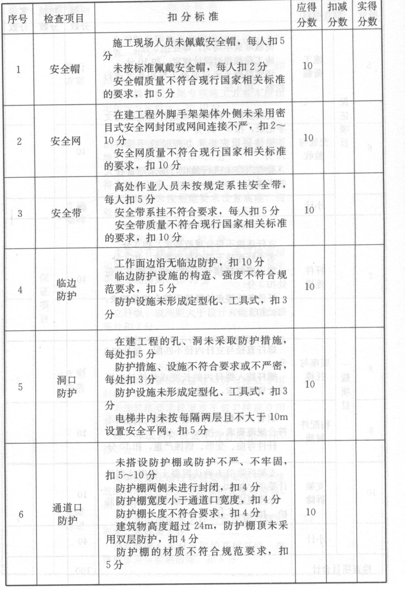 2 評分應(yīng)采用扣減分值的方法,扣減分值總和不得超過該檢查項目的應(yīng)得分值;(免費下載)JGJ 59-2011 建筑施工安全檢查標(biāo)準(zhǔn)