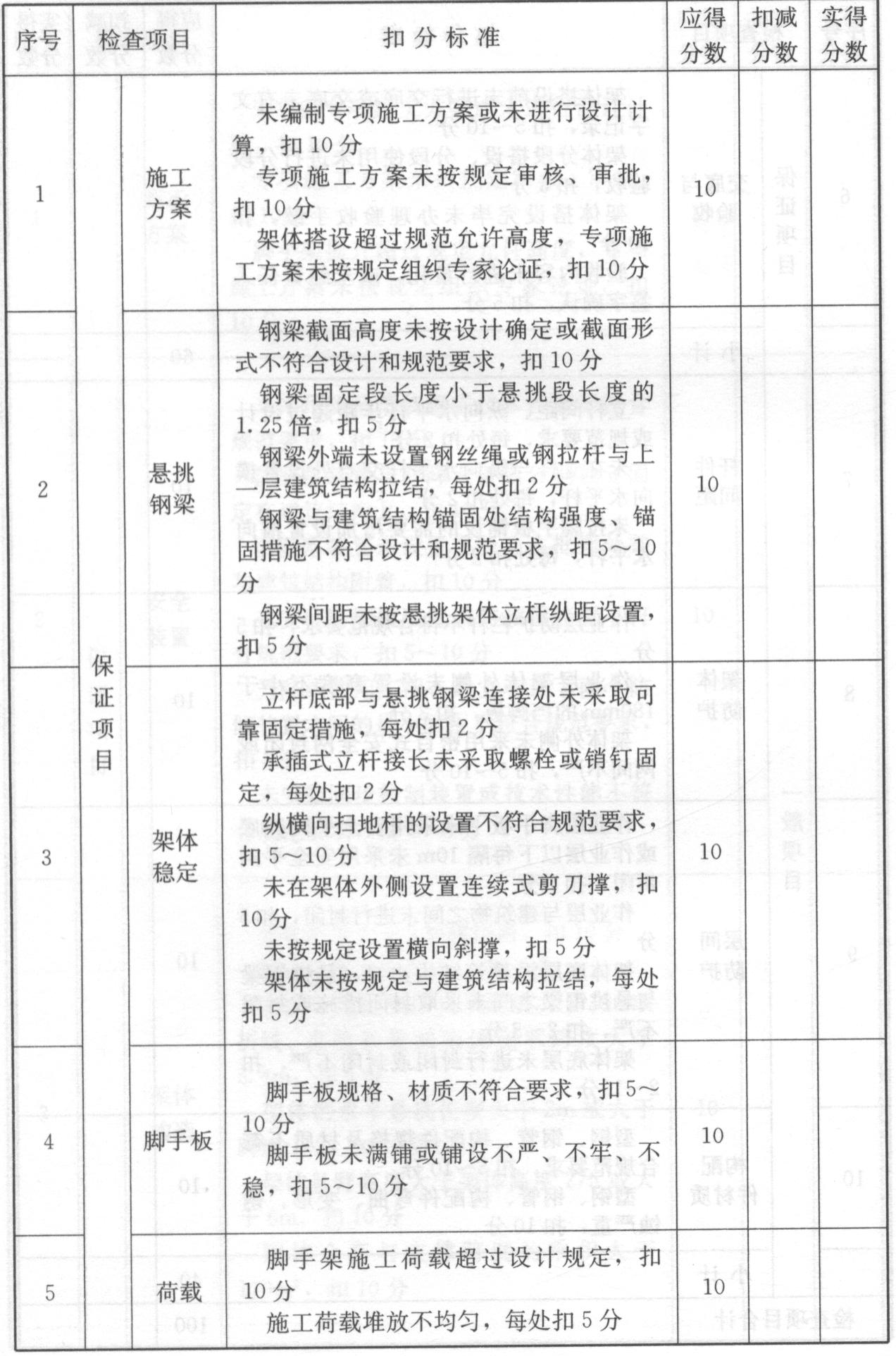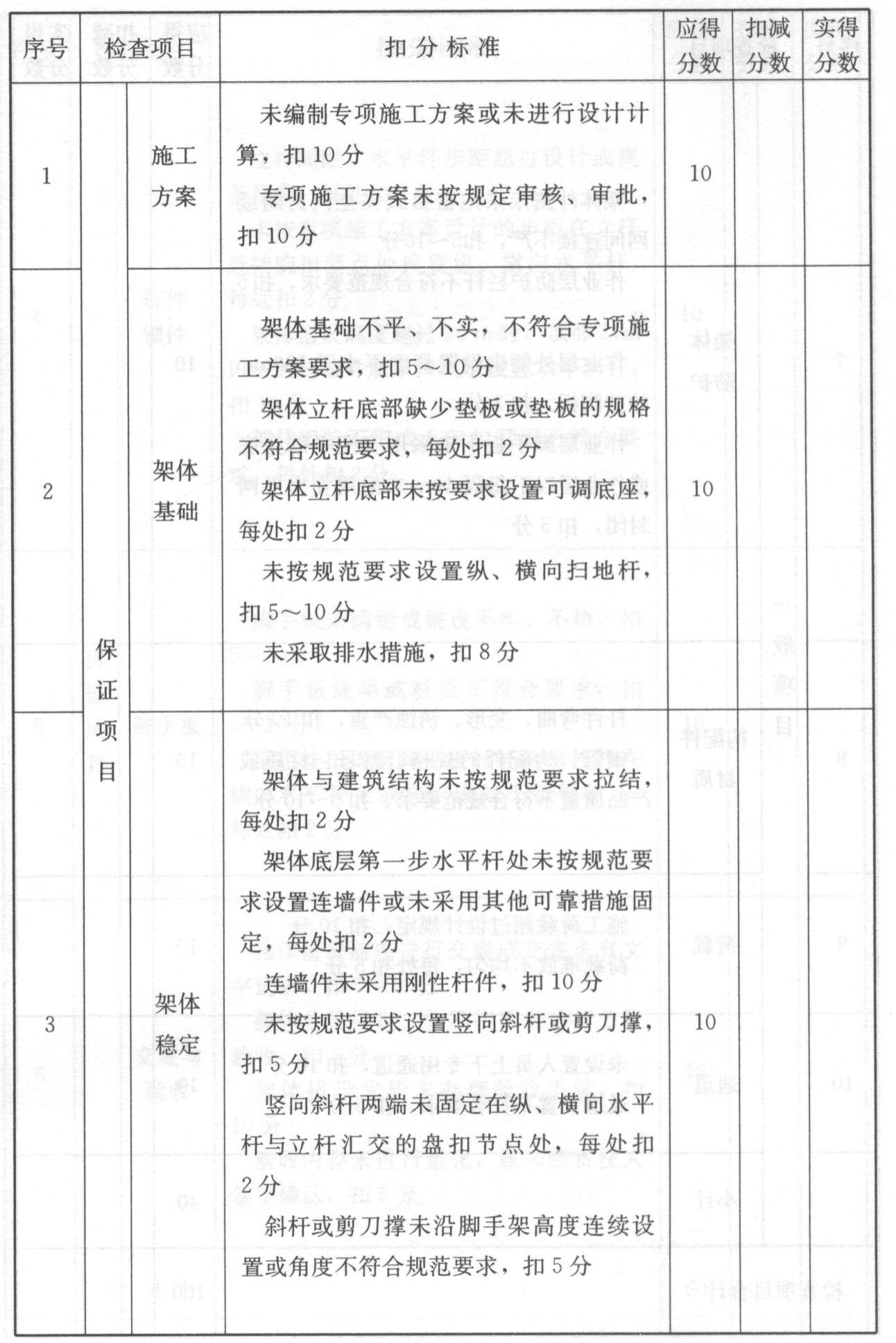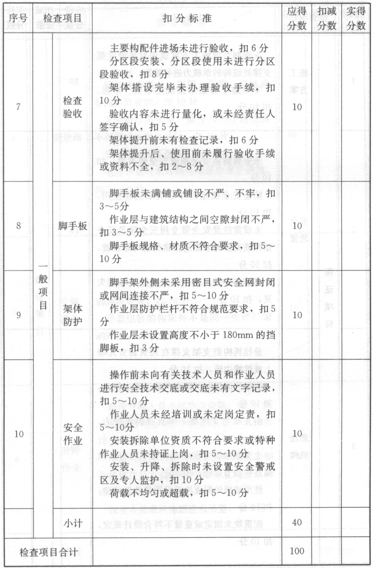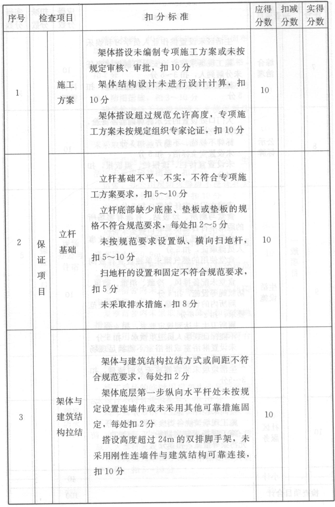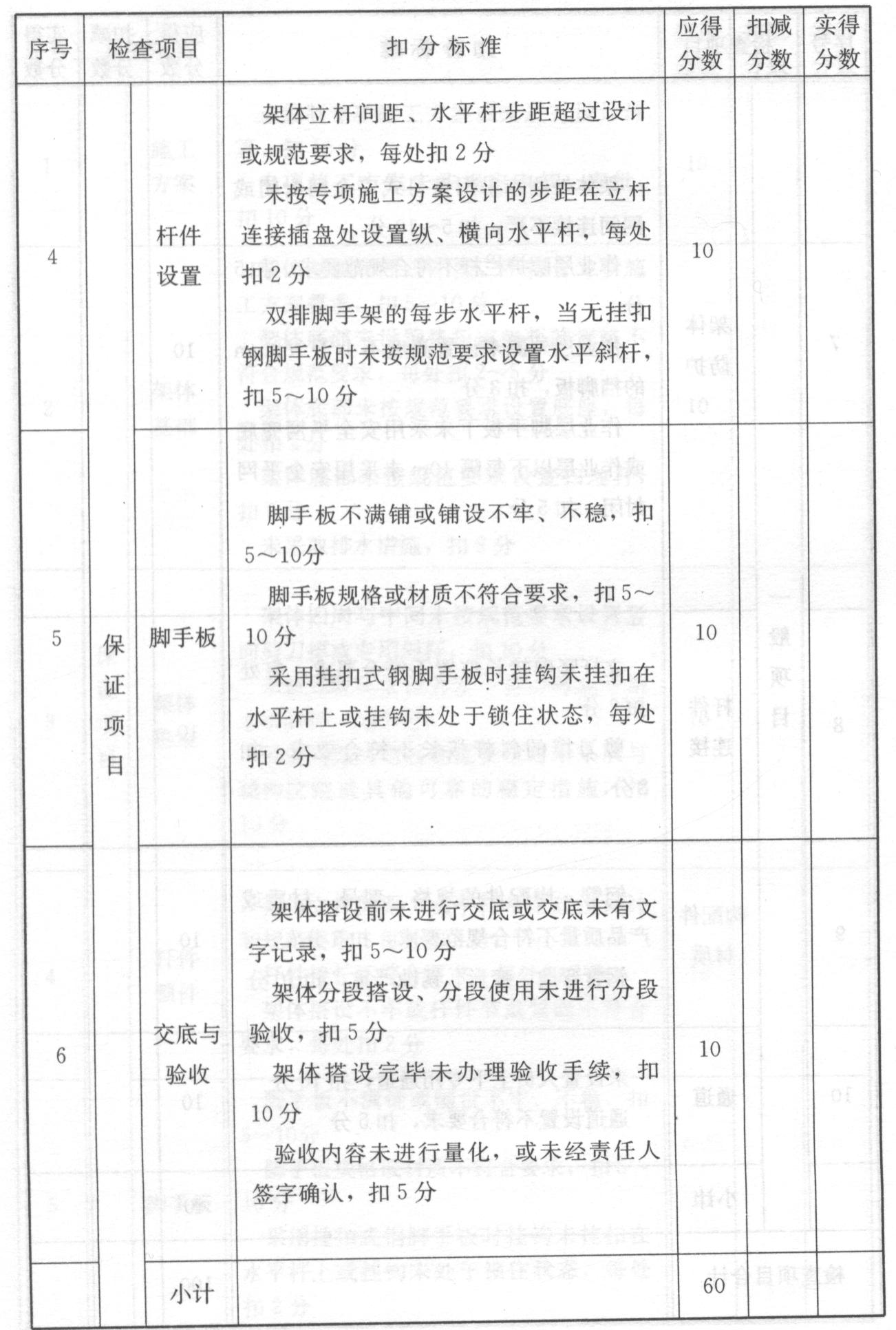 2 評分應(yīng)采用扣減分值的方法,扣減分值總和不得超過該檢查項目的應(yīng)得分值;(免費下載)JGJ 59-2011 建筑施工安全檢查標(biāo)準(zhǔn)