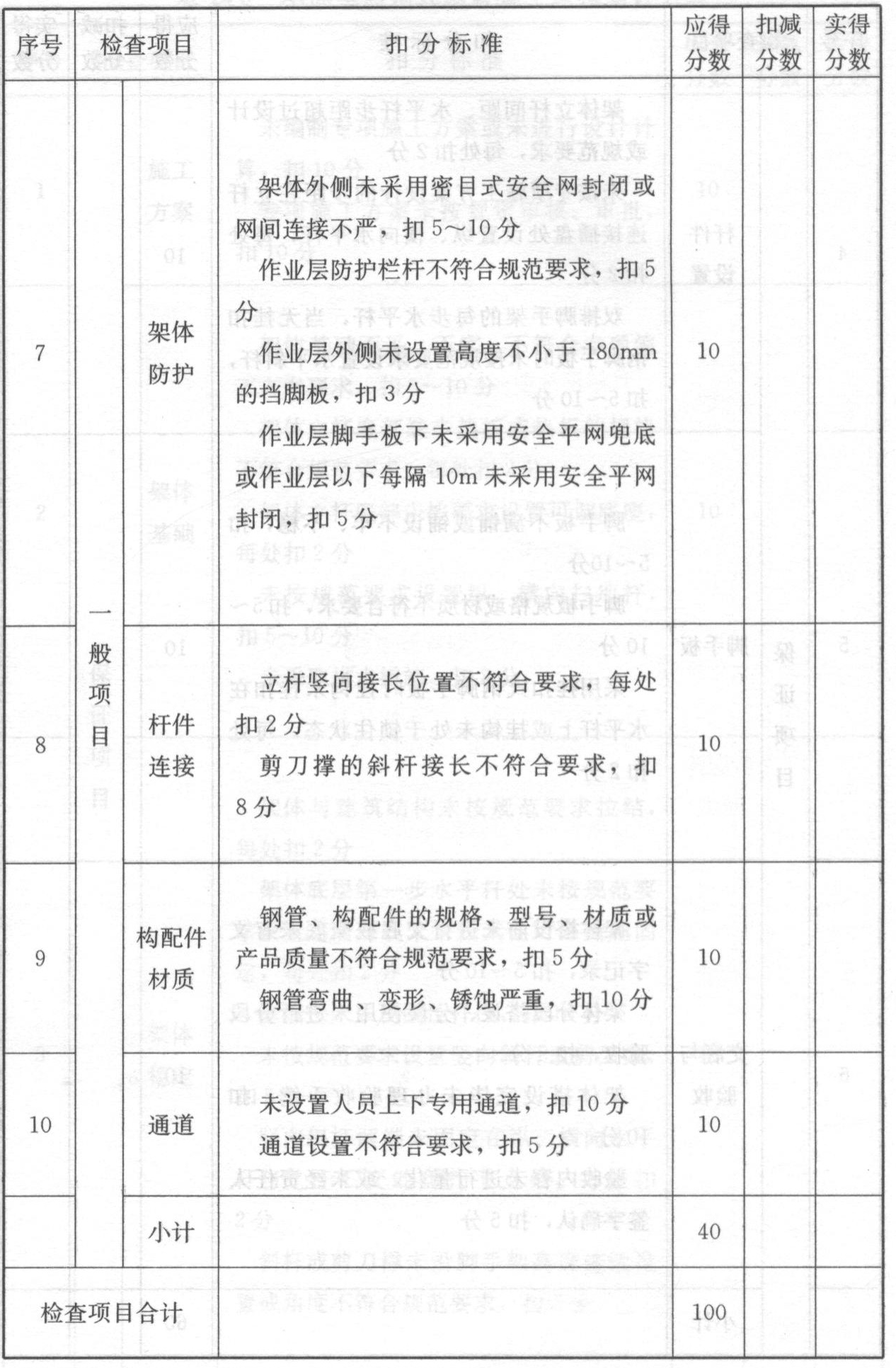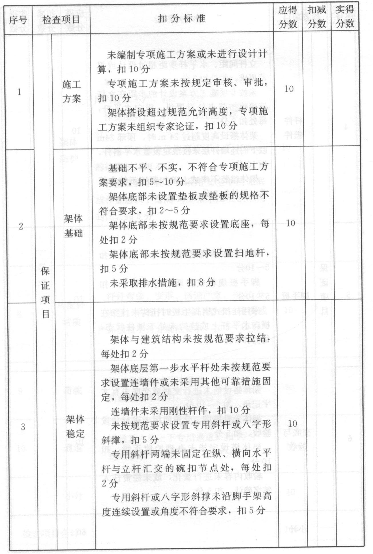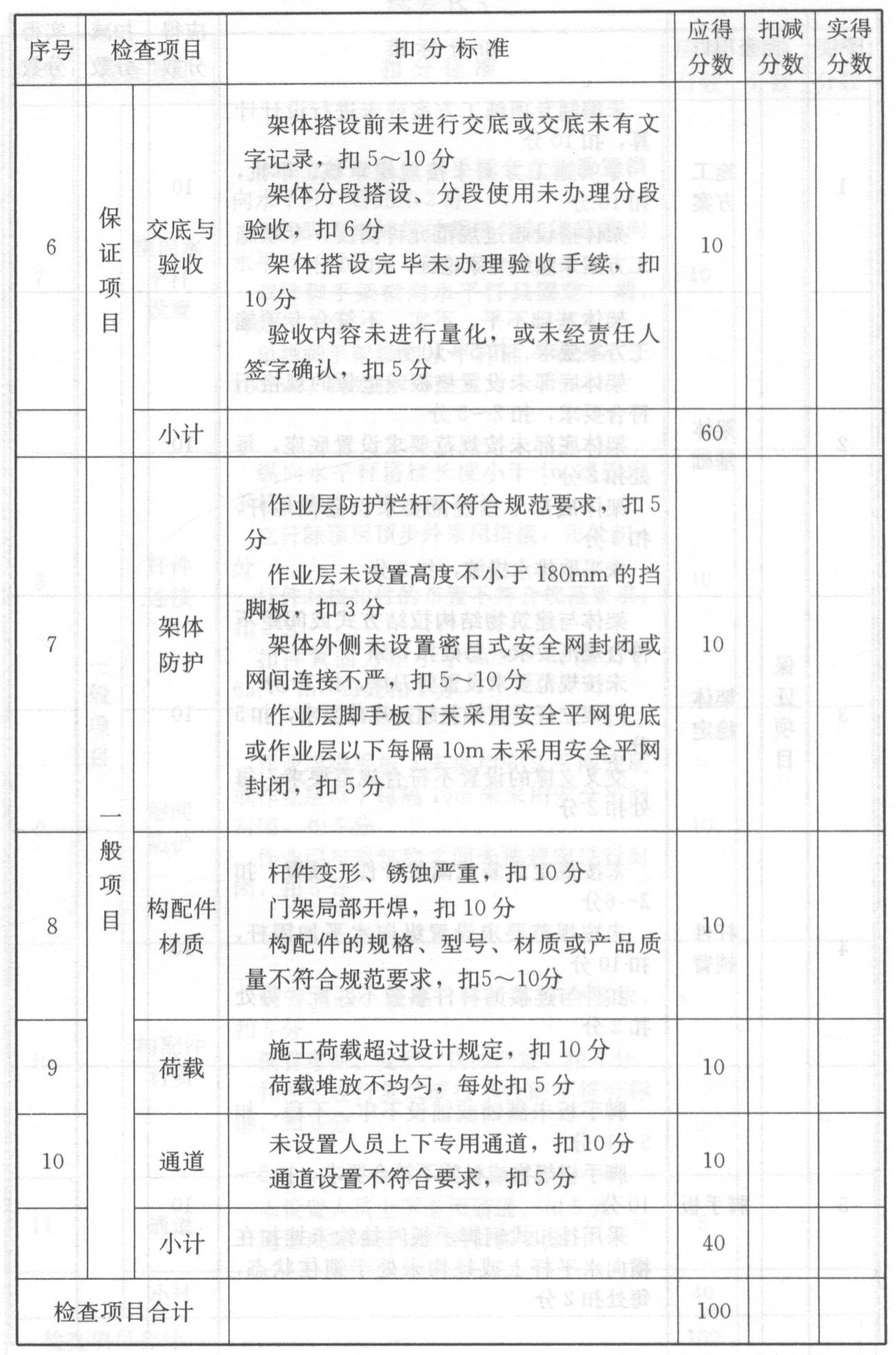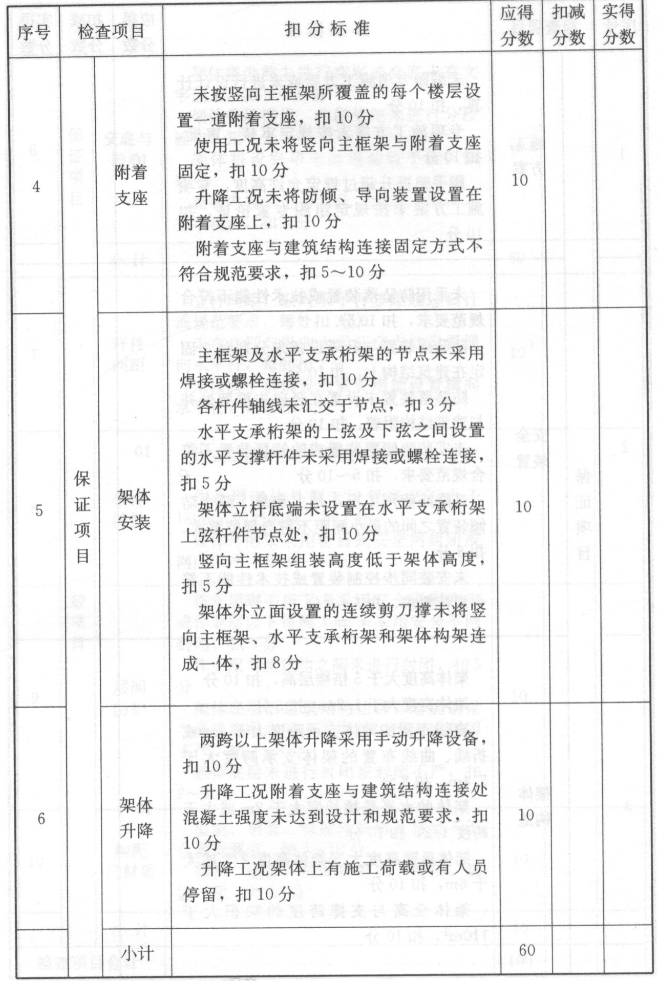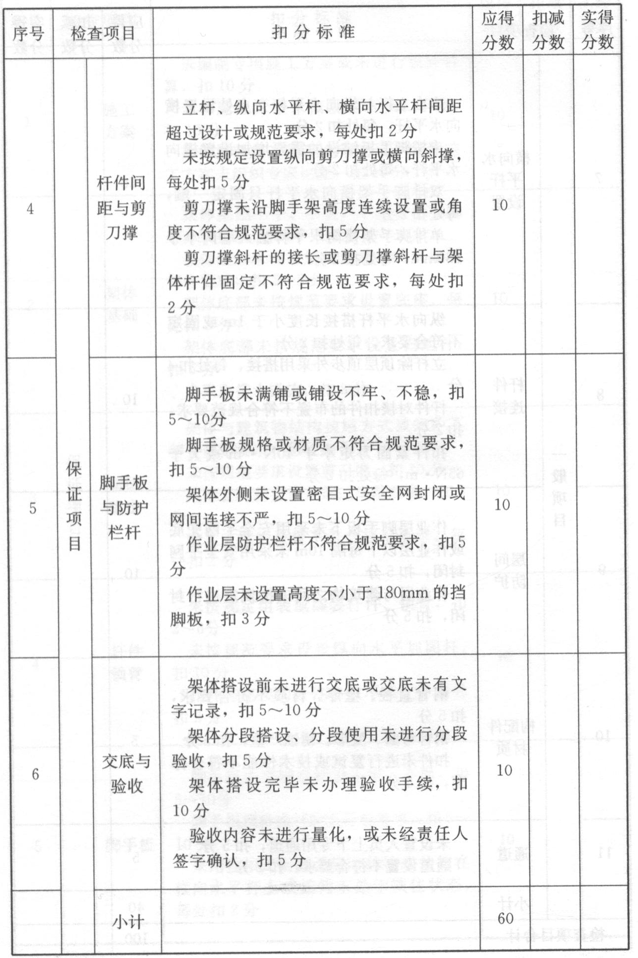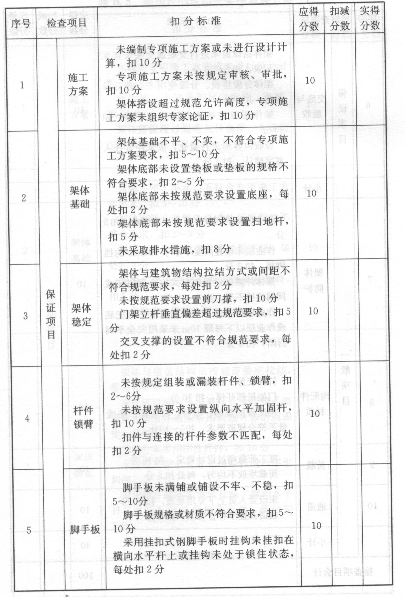 2 評分應(yīng)采用扣減分值的方法,扣減分值總和不得超過該檢查項目的應(yīng)得分值;(免費下載)JGJ 59-2011 建筑施工安全檢查標(biāo)準(zhǔn)