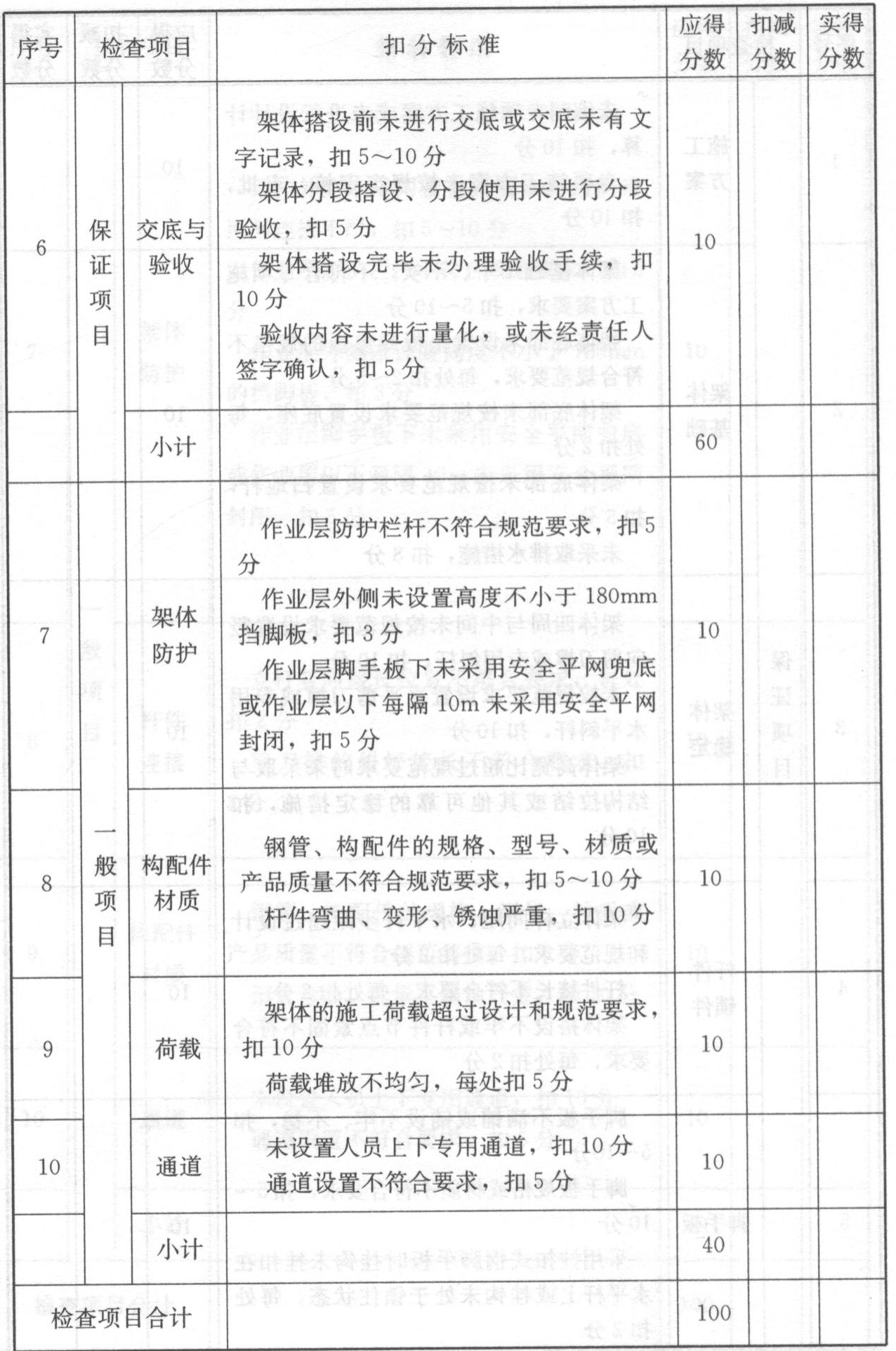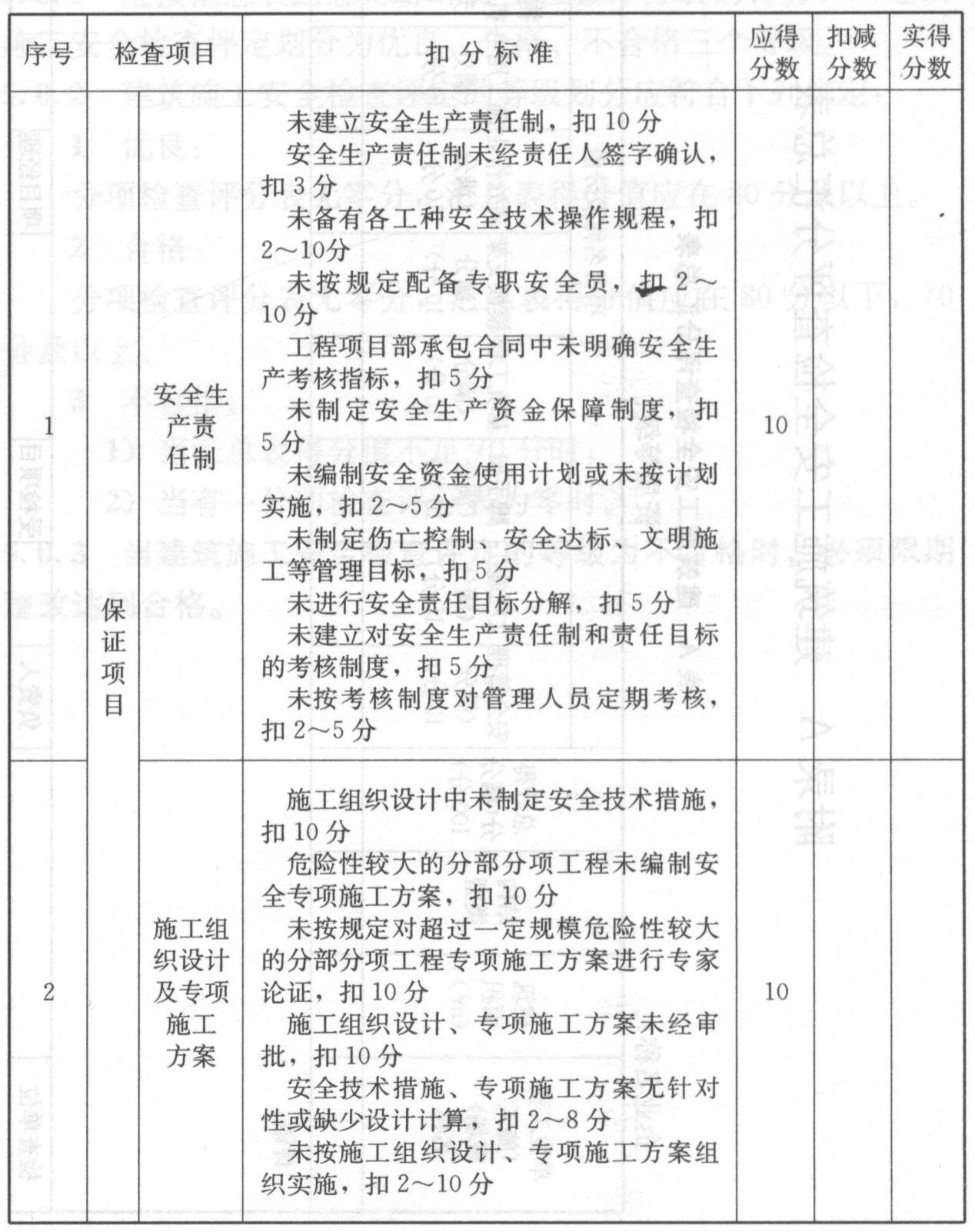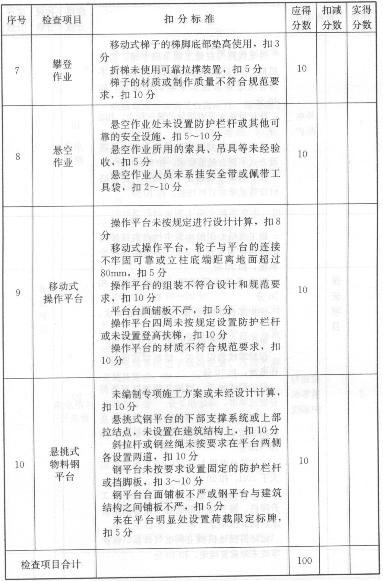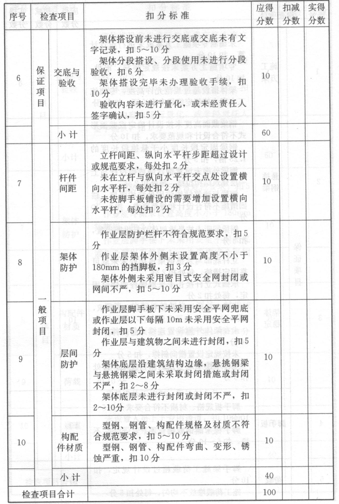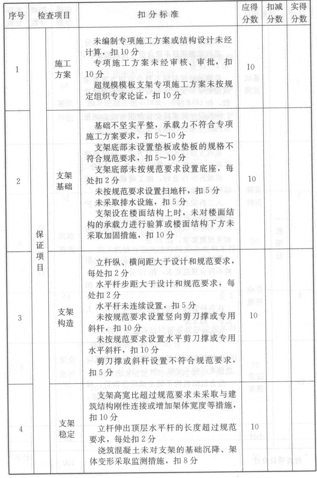 2 評分應(yīng)采用扣減分值的方法,扣減分值總和不得超過該檢查項目的應(yīng)得分值;(免費下載)JGJ 59-2011 建筑施工安全檢查標(biāo)準(zhǔn)