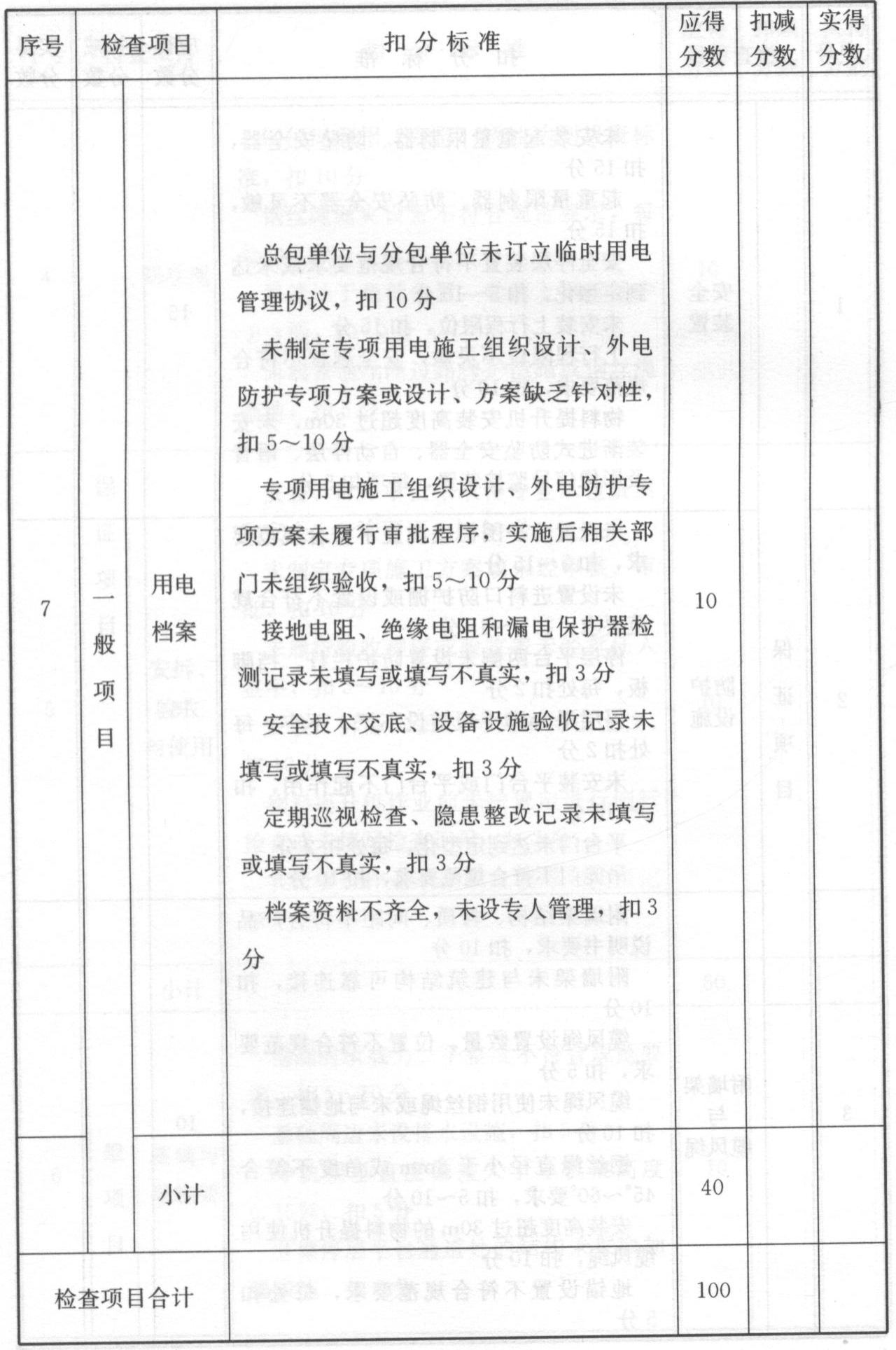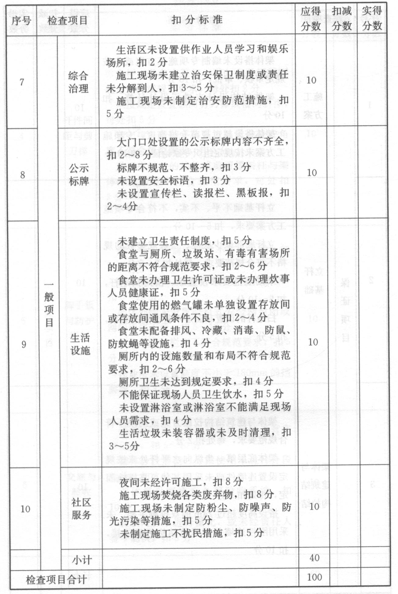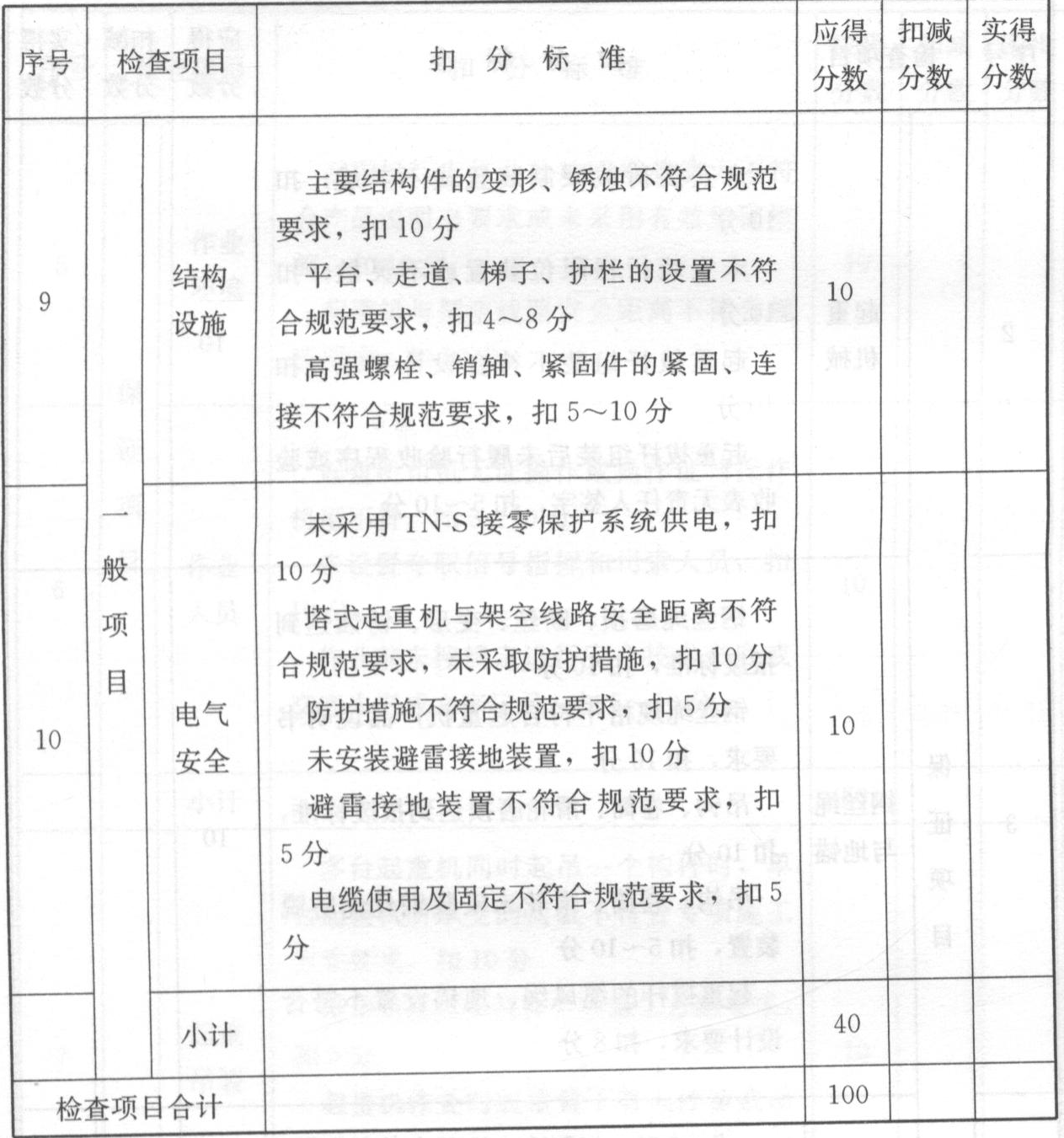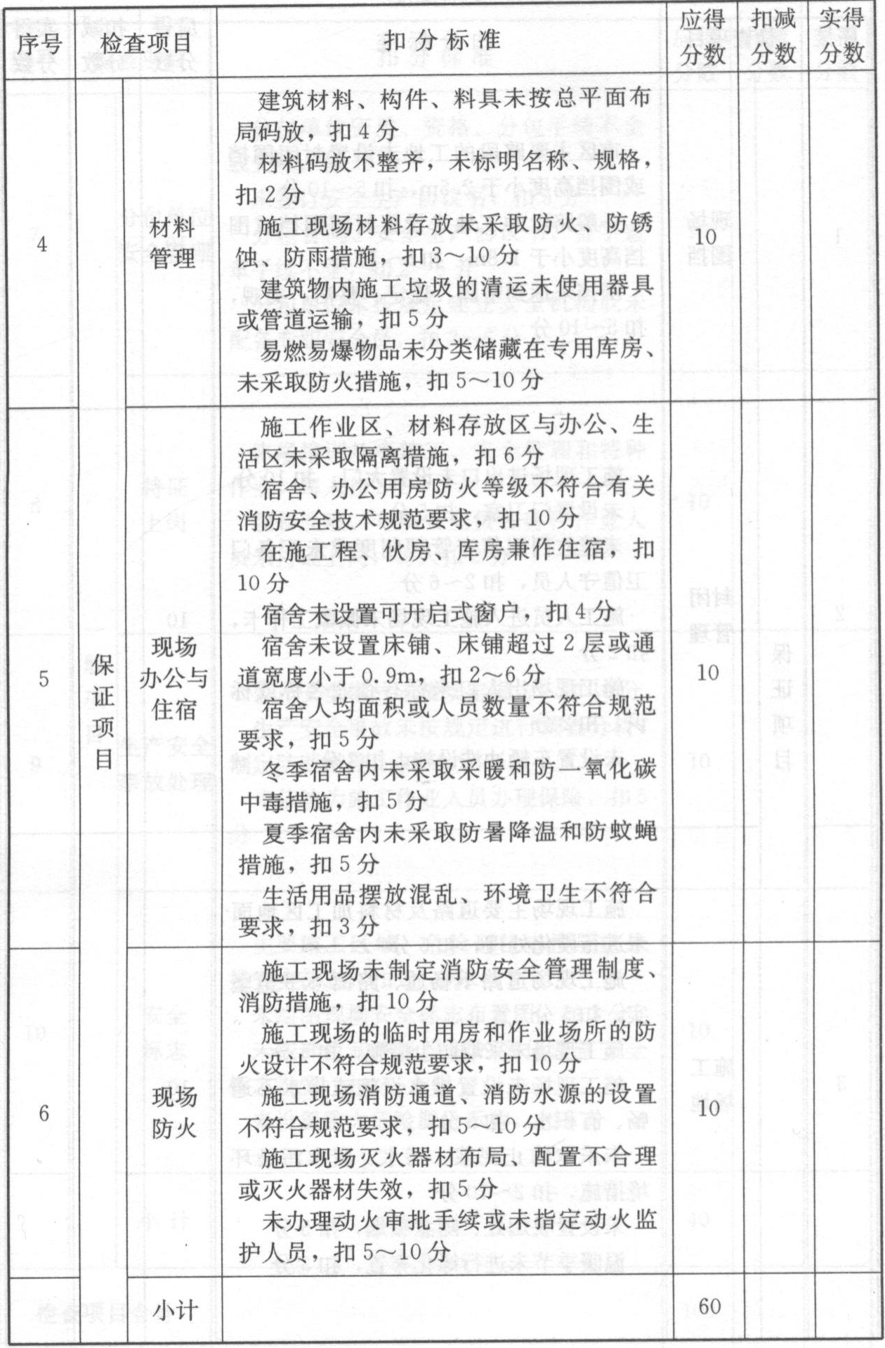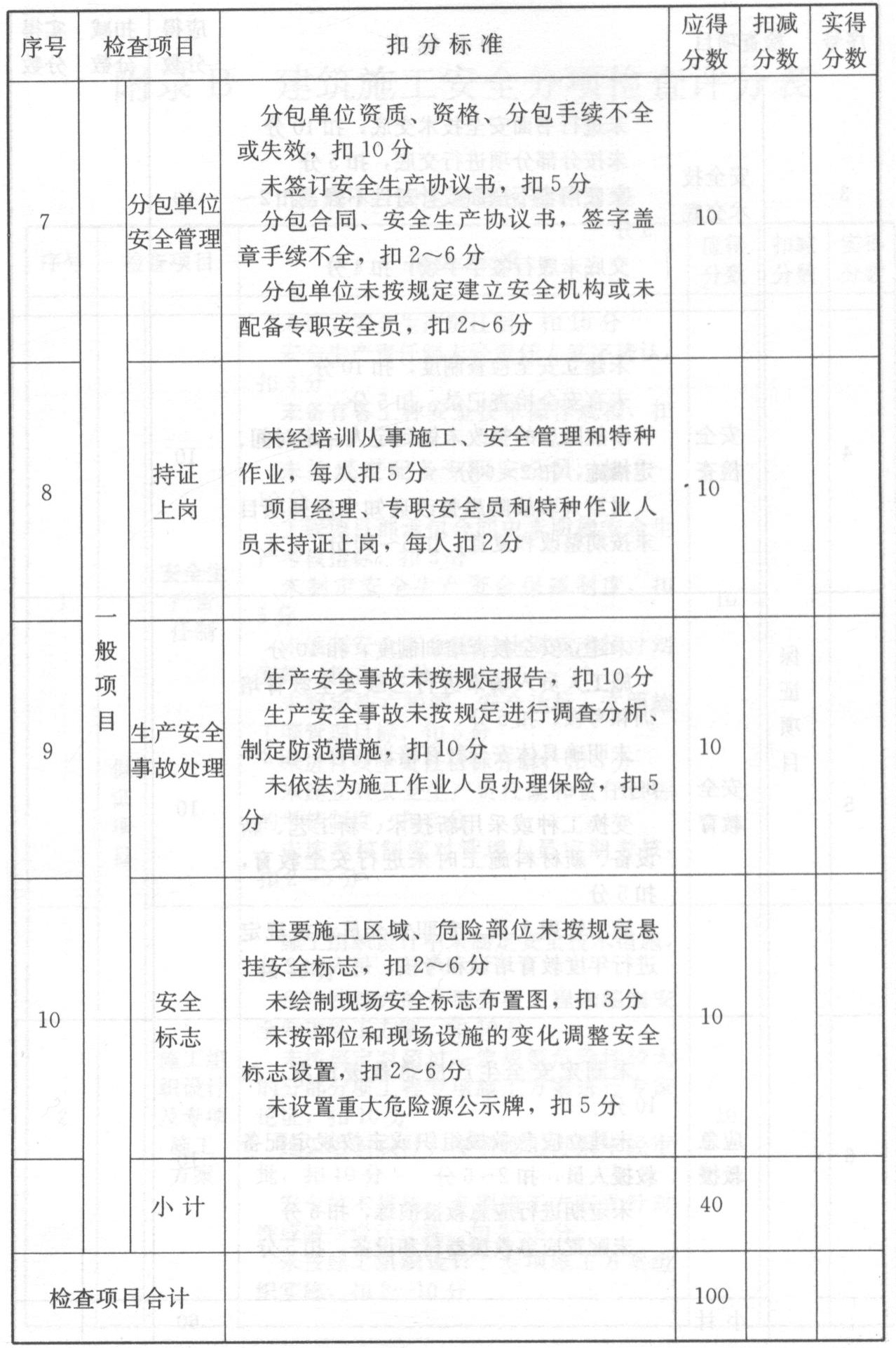 2 評分應(yīng)采用扣減分值的方法,扣減分值總和不得超過該檢查項目的應(yīng)得分值;(免費下載)JGJ 59-2011 建筑施工安全檢查標(biāo)準(zhǔn)