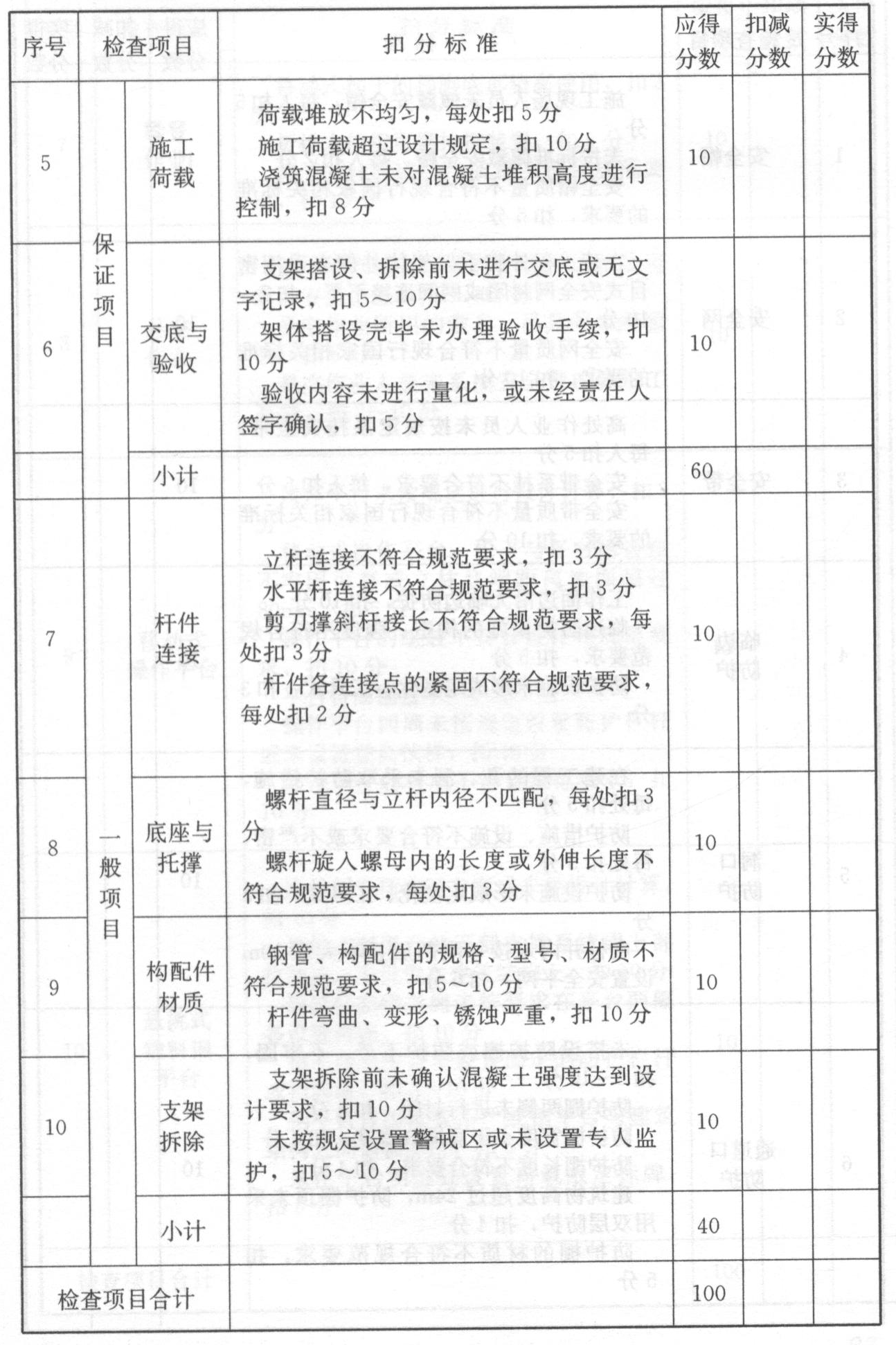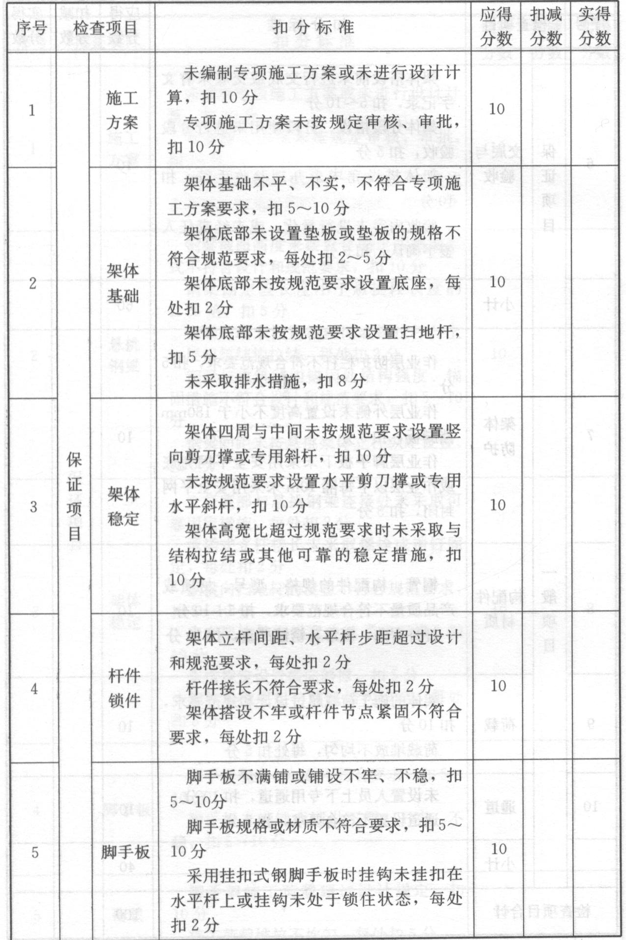 表B.5 碗扣式鋼管腳手架檢查評分表(免費下載)JGJ 59-2011 建筑施工安全檢查標(biāo)準(zhǔn)