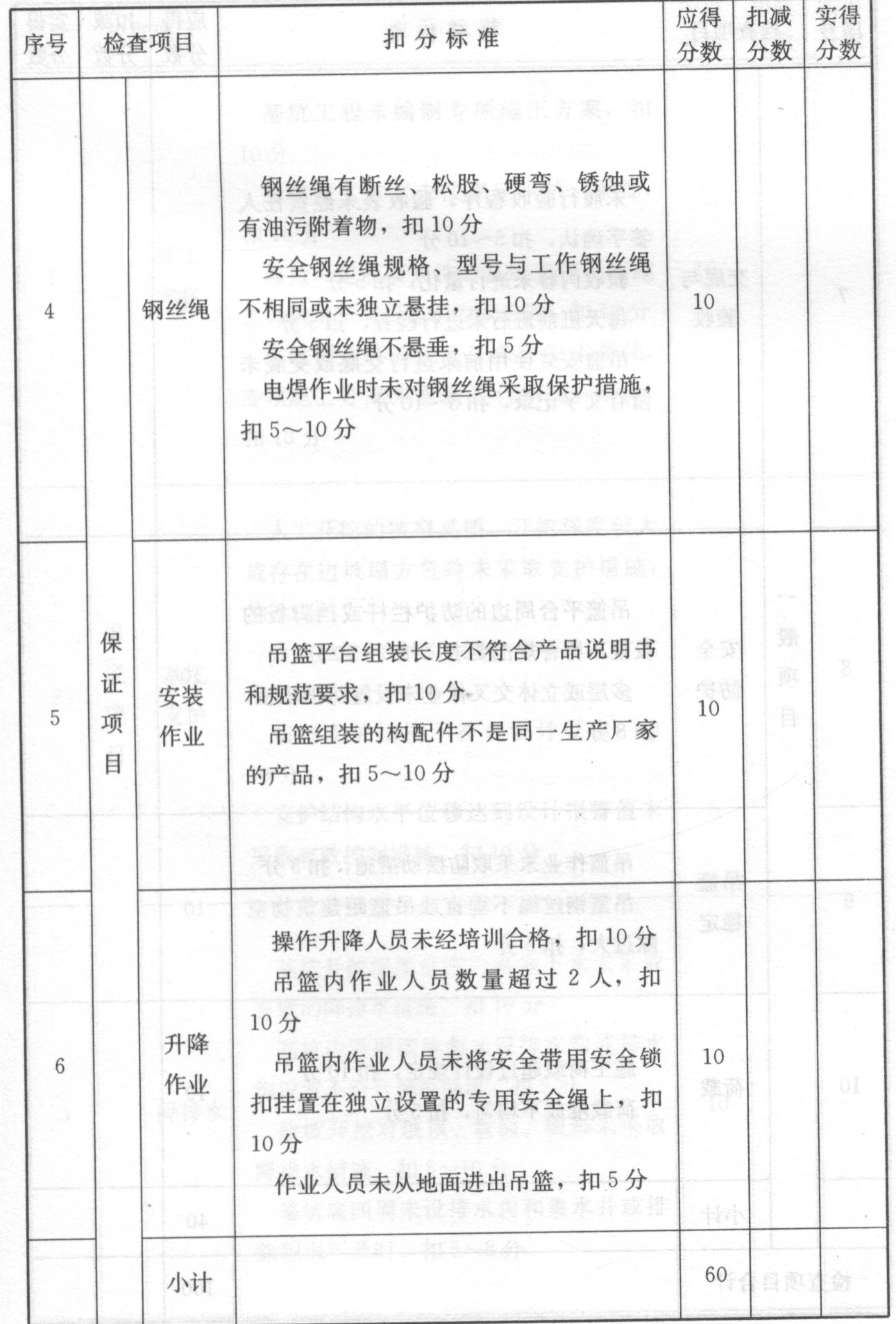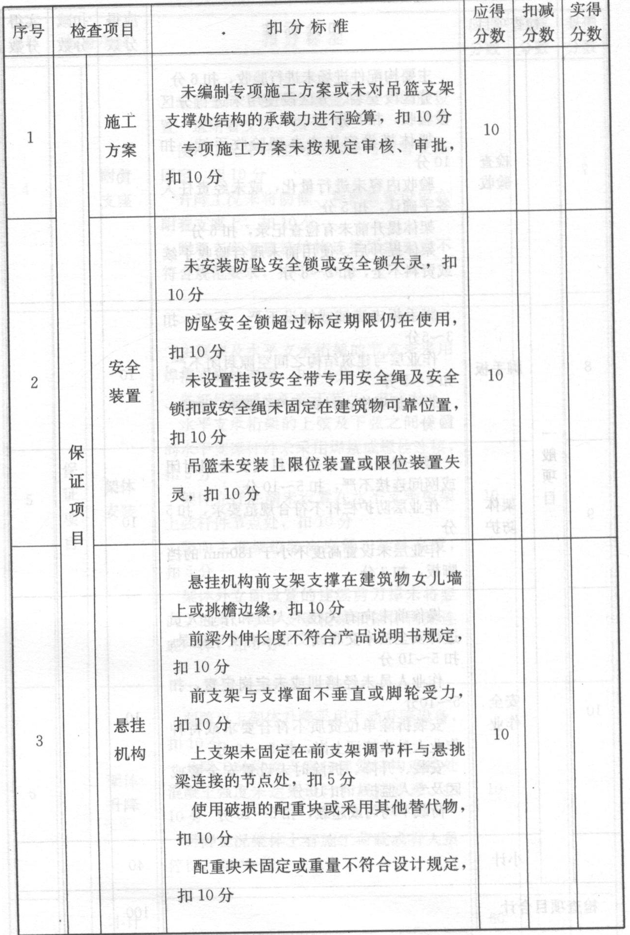 表B.10 高處作業(yè)吊籃檢查評分表(免費下載)JGJ 59-2011 建筑施工安全檢查標(biāo)準(zhǔn)