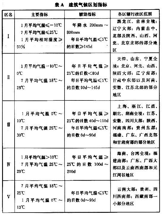 附錄A 建筑氣候區(qū)劃指標(biāo)