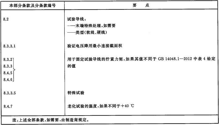 本部分不規(guī)定常規(guī)試驗。8.3.3.5規(guī)定的額定截面積的驗證是特殊試驗,其他試驗均為型式試驗。