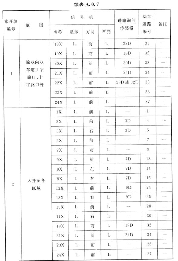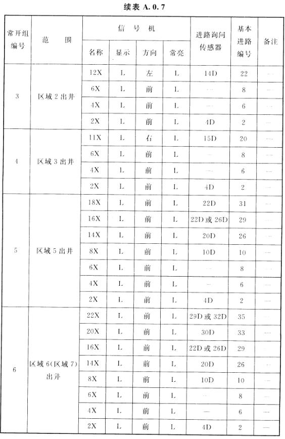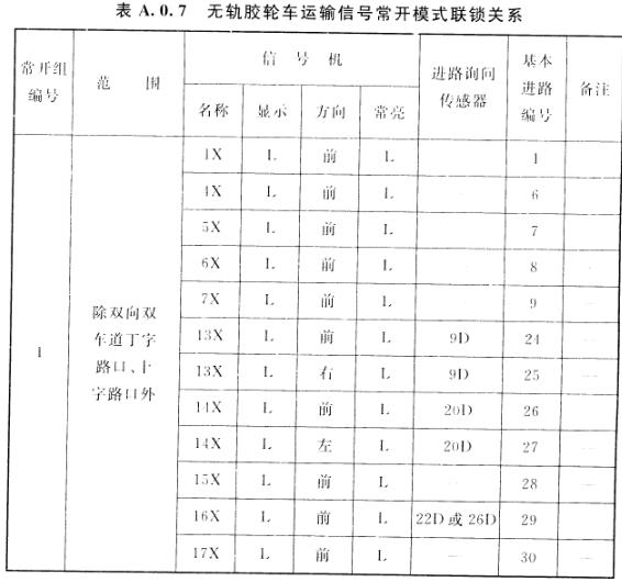 A.0.7無軌膠輪車運輸信號常開模式聯(lián)鎖關系應符合表A.0.7的規(guī)定。
