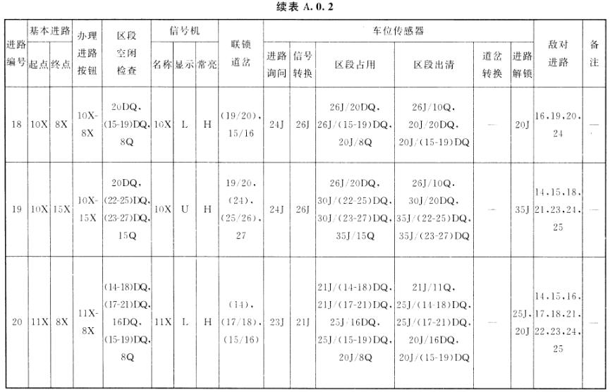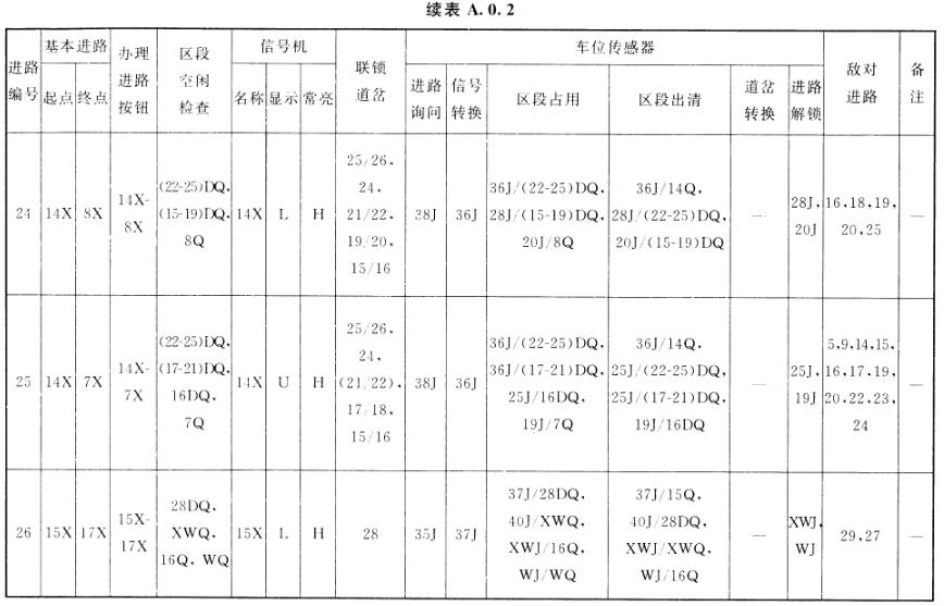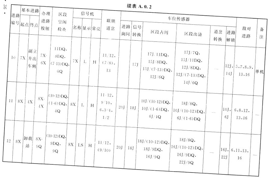 表明運輸信號系統(tǒng)中聯(lián)鎖關系的表格。