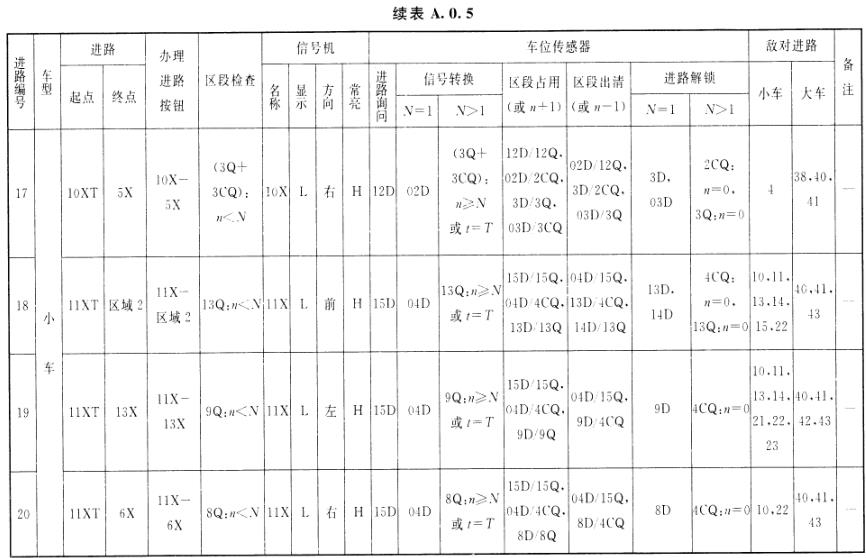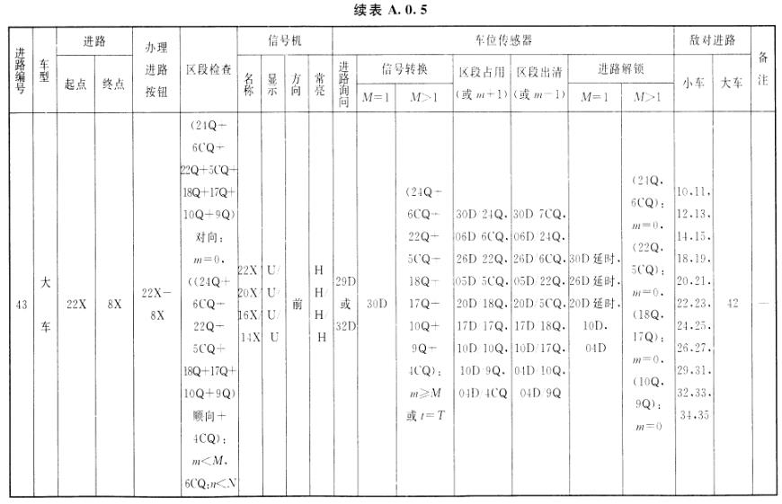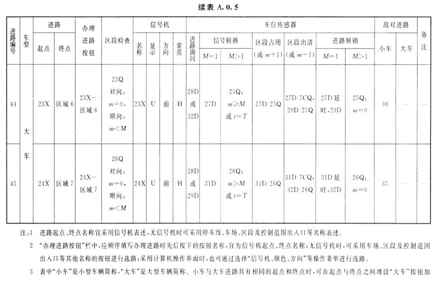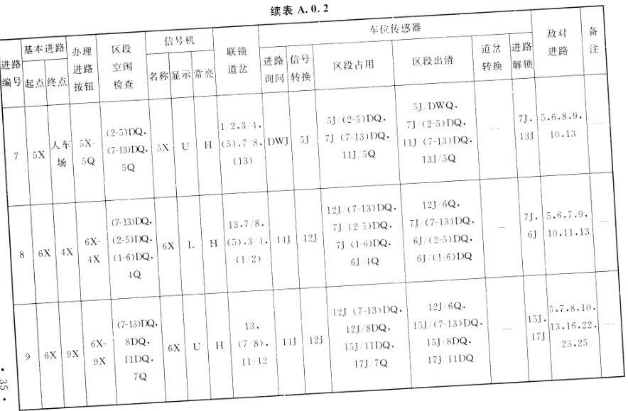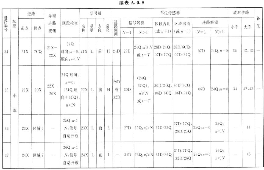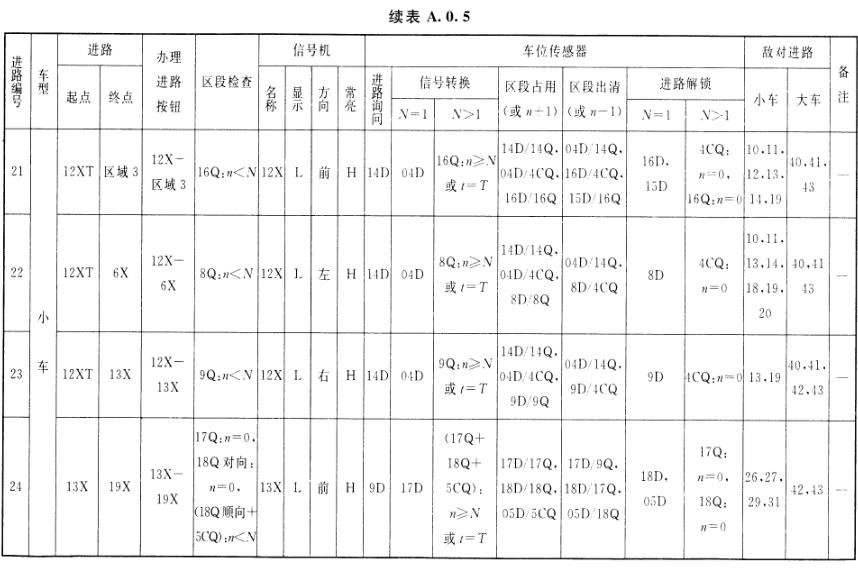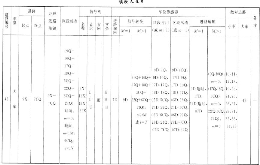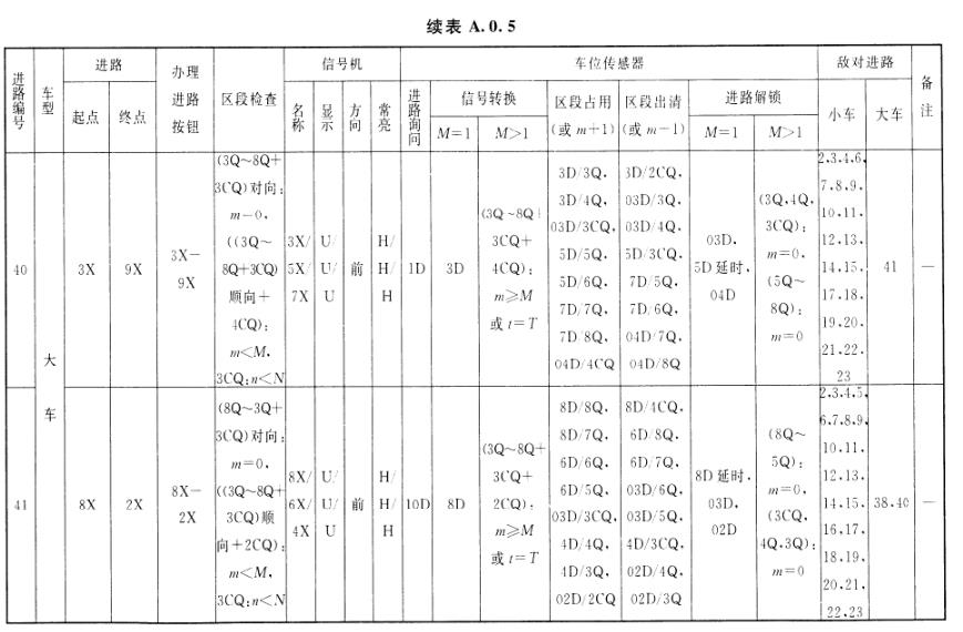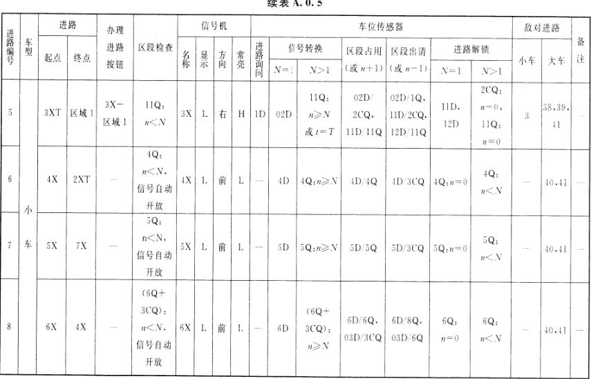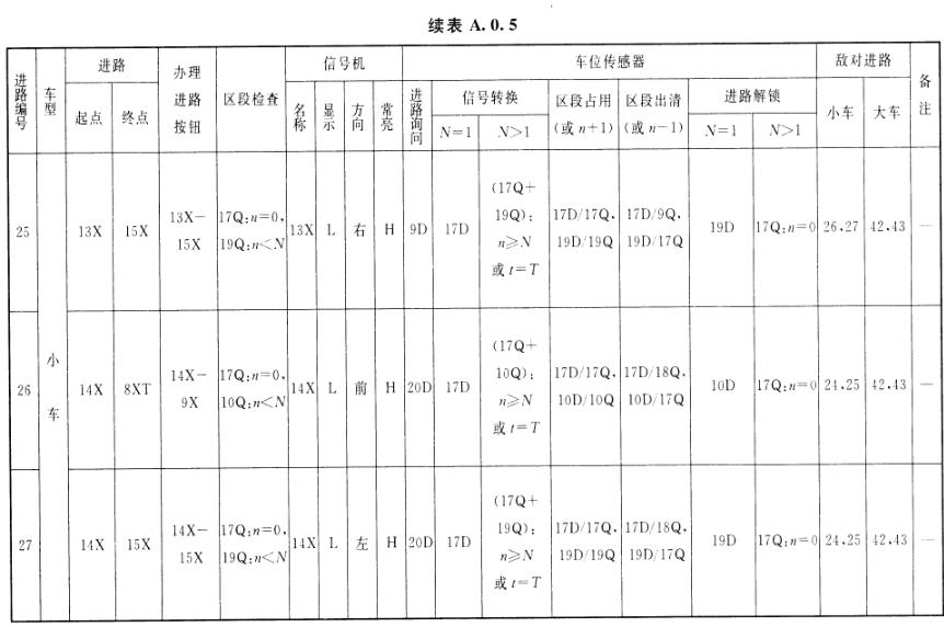 A.0.5無軌膠輪車運輸信號基本進路聯(lián)鎖關系應符合表A.0.5的規(guī)定。