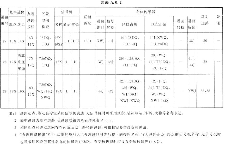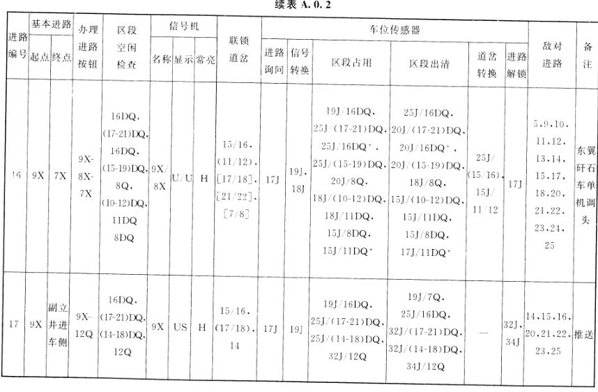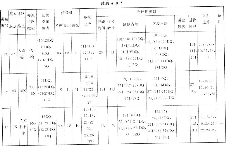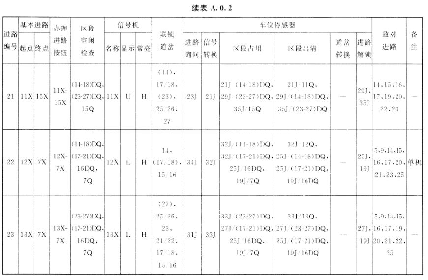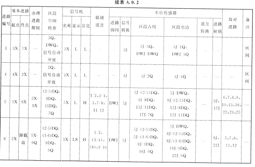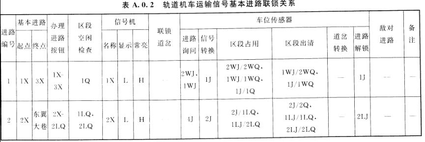 A.0.2軌道機車運輸信號基本進路聯(lián)鎖關系應符合表A.0.2的規(guī)定。