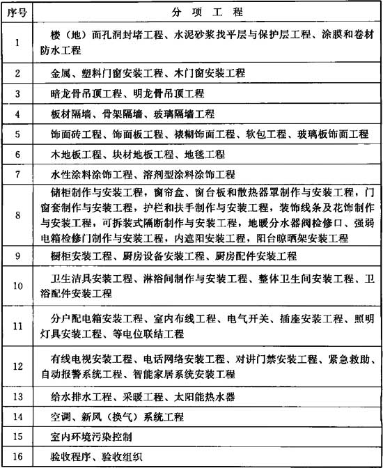 附錄C 住宅室內(nèi)裝飾裝修工程分項(xiàng)工程劃分