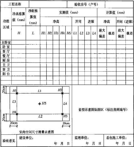 附錄A 室內(nèi)凈距、凈高尺寸檢驗(yàn)記錄