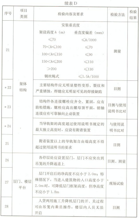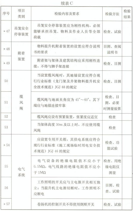 1) 附著式升降腳手架、高處作業(yè)吊籃、龍門架及井架物料提升機不得超過3項;(免費下載)JGJ 305-2013 建筑施工升降設備設施檢驗標準