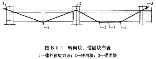B.0.1 體外預(yù)應(yīng)力加固混凝土結(jié)構(gòu)的轉(zhuǎn)向塊、錨固塊形式和布置應(yīng)根據(jù)既有建筑結(jié)構(gòu)布置、體外預(yù)應(yīng)力筋布置選用(圖B.0.1)。