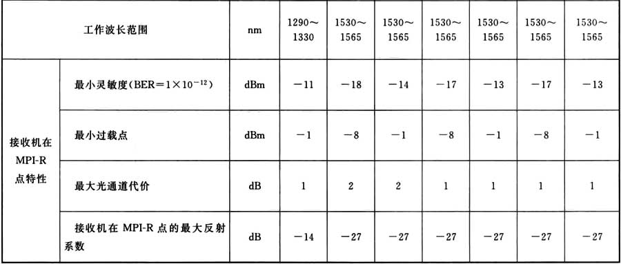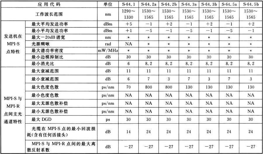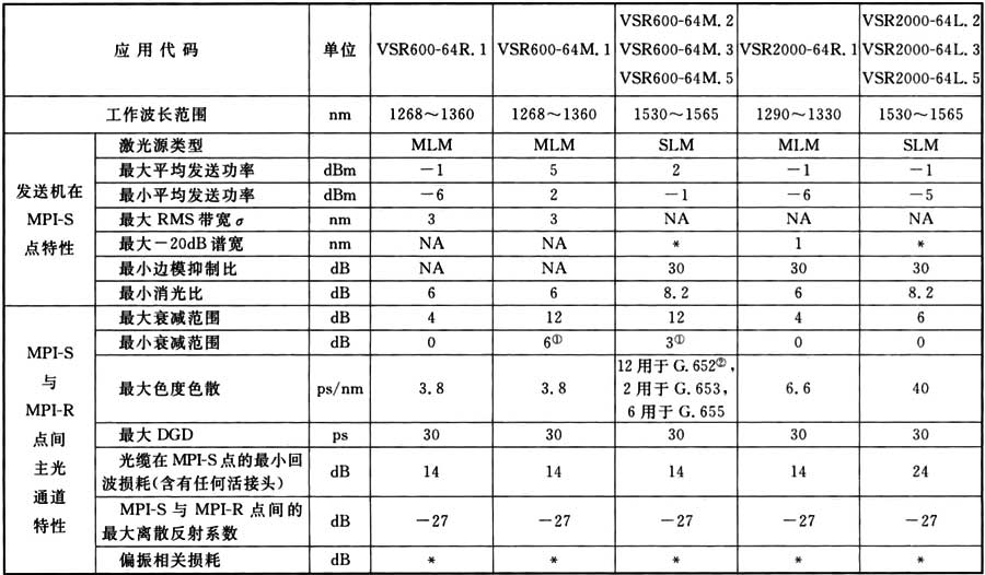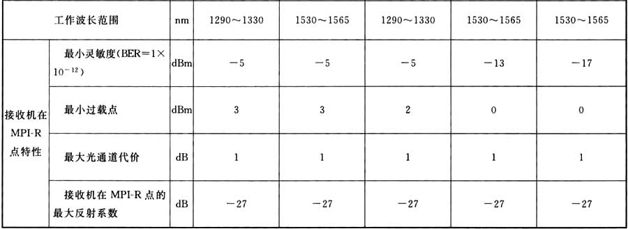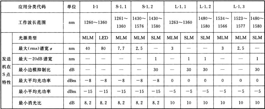 表A.0.1 STM-1光接口參數(shù)規(guī)范