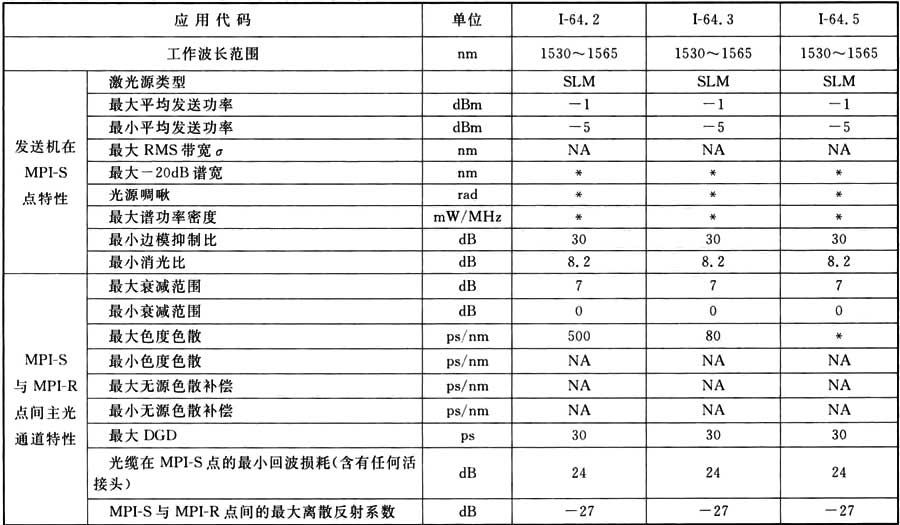 表A.0.7 STM-64光接口參數(shù)(I型)規(guī)范