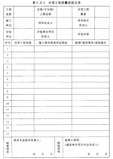 C.0.2 分項工程質(zhì)量驗收記錄應符合表C.0.2的規(guī)定。