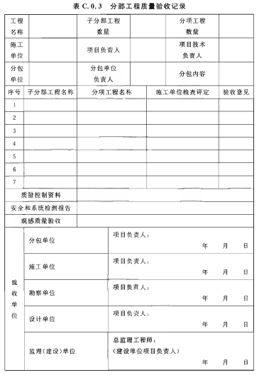 C.0.3 分部工程質(zhì)量驗收記錄應符合表C.0.3的規(guī)定。