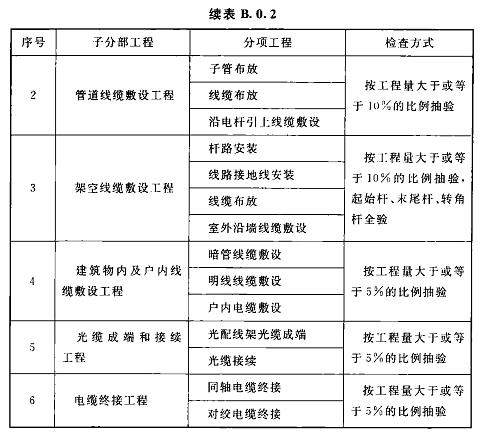 B.0.2線纜敷設分部工程驗收項目應符合表B.0.2的規(guī)定。