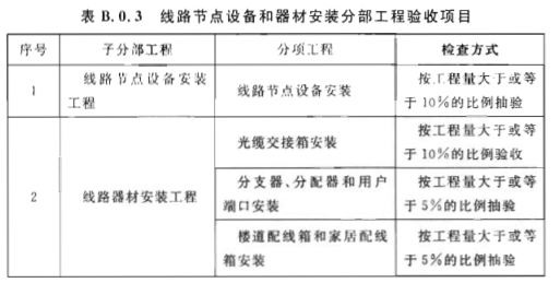 B.0.3 線路節(jié)點設備和器材安裝分部工程驗收項目應符合表B.0.3的規(guī)定。
