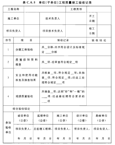 C.0.5 單位(子單位)工程質(zhì)量竣工驗收記錄應符合表C.0.5的規(guī)定。