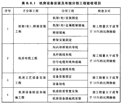 B.0.1機房設備安裝及布線分部工程驗收項目應符合表B.0.1的規(guī)定。