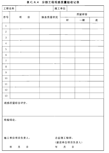 C.0.4 分部工程觀感驗收記錄應符合表C.0.4的規(guī)定。