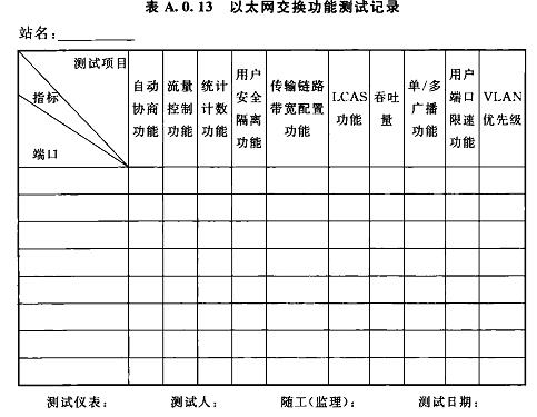 A.0.13以太網(wǎng)交換功能測(cè)試記錄可按表A.0.13選用。