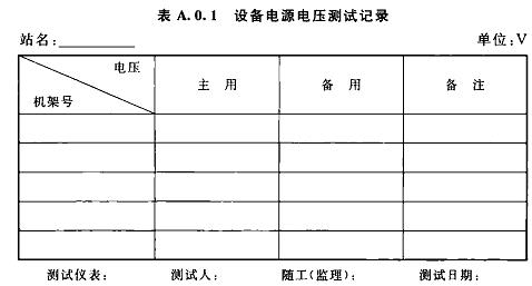 A.0.1設(shè)備電源電壓測(cè)試記錄可按表A.0.1選用。