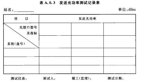 A.0.3發(fā)送光功率測(cè)試記錄可按表A.0.3選用。