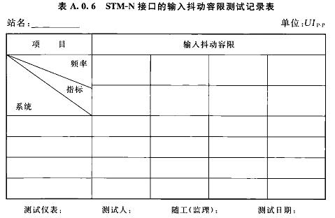 A.0.6STM-N接口的輸入抖動(dòng)容限測(cè)試記錄可按表A.0.6選用。