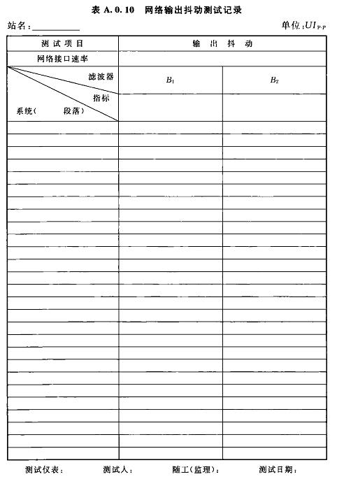 A.0.10網(wǎng)絡(luò)輸出抖動(dòng)測(cè)試記錄可按表A.0.10選用。