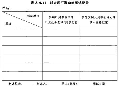A.0.14以太網(wǎng)匯聚功能測(cè)試記錄可按表A.0.14選用。