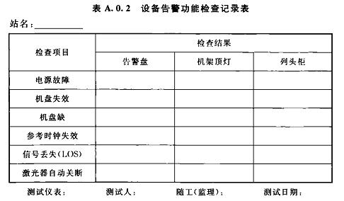 A.0.2設(shè)備告警功能檢查記錄可按表A.0.2選用。
