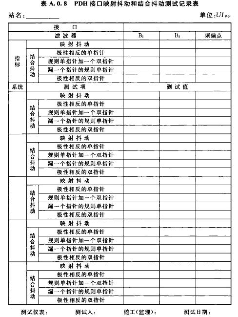 A.0.8PDH接口映射抖動(dòng)和結(jié)合抖動(dòng)測(cè)試記錄可按表A.0.8選用。