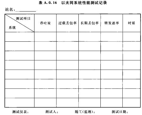 A.0.16以太網(wǎng)系統(tǒng)性能測(cè)試記錄可按表A.0.16選用。