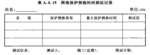 A.0.19網(wǎng)絡(luò)保護(hù)倒換時(shí)間測(cè)試記錄可按表A.0.19選用。