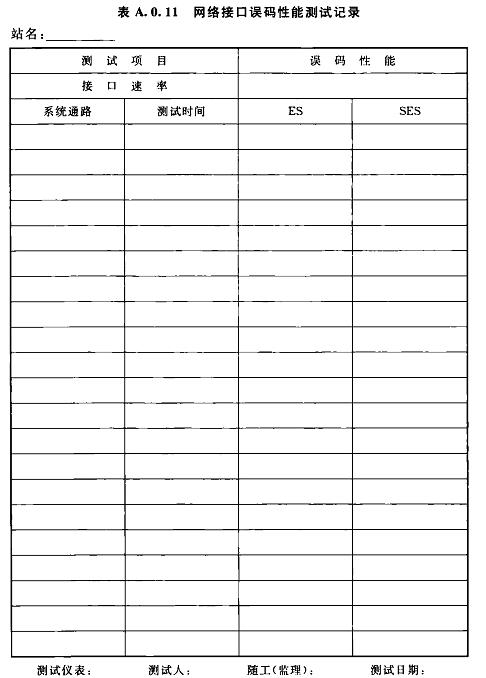 A.0.11網(wǎng)絡(luò)接口誤碼性能測(cè)試記錄可按表A.0.11選用。